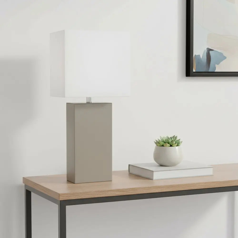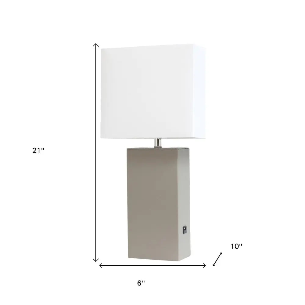21" Gray Faux Leather USB Table Lamp LED With White Shade