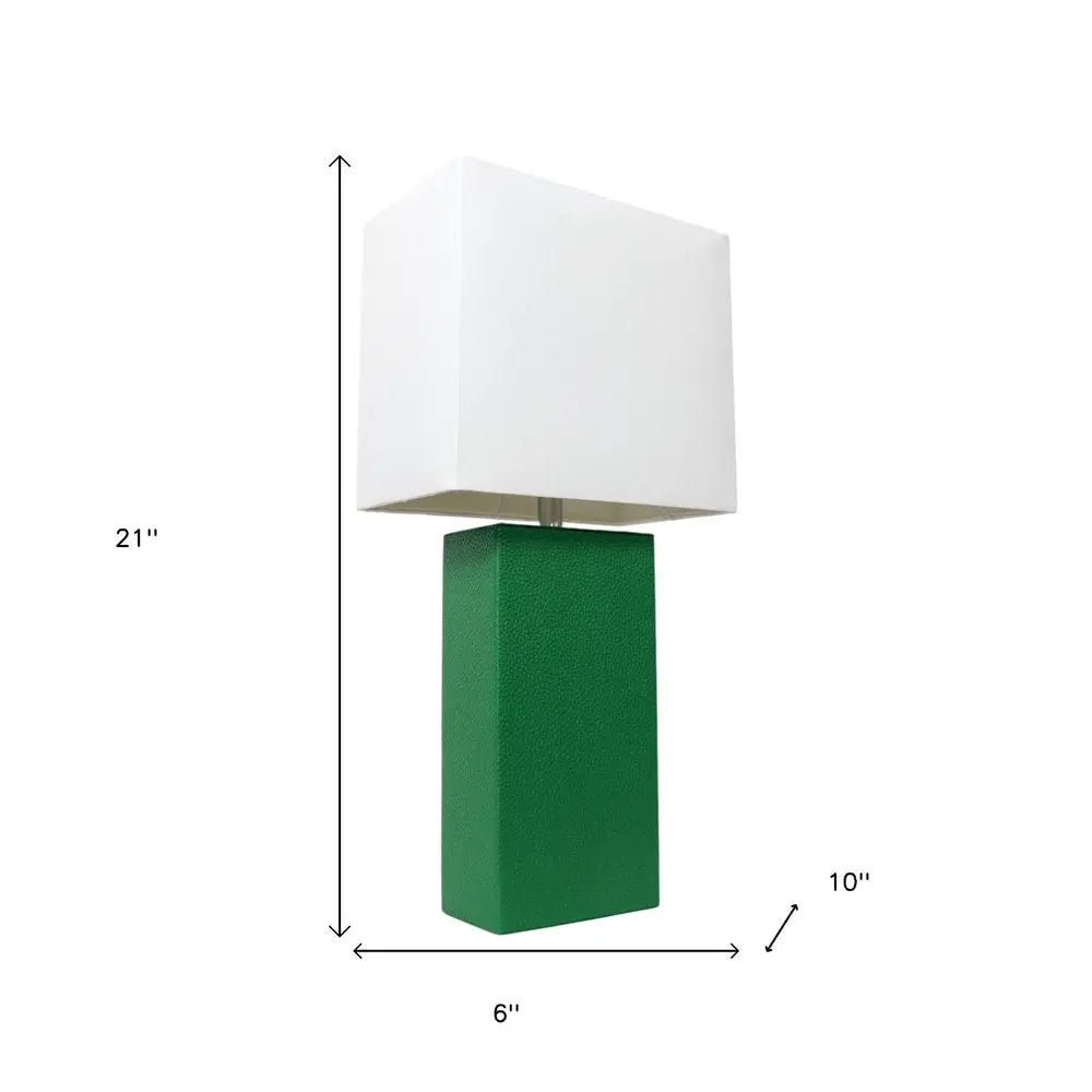 21" Green Faux Leather Table Lamp LED With White Shade