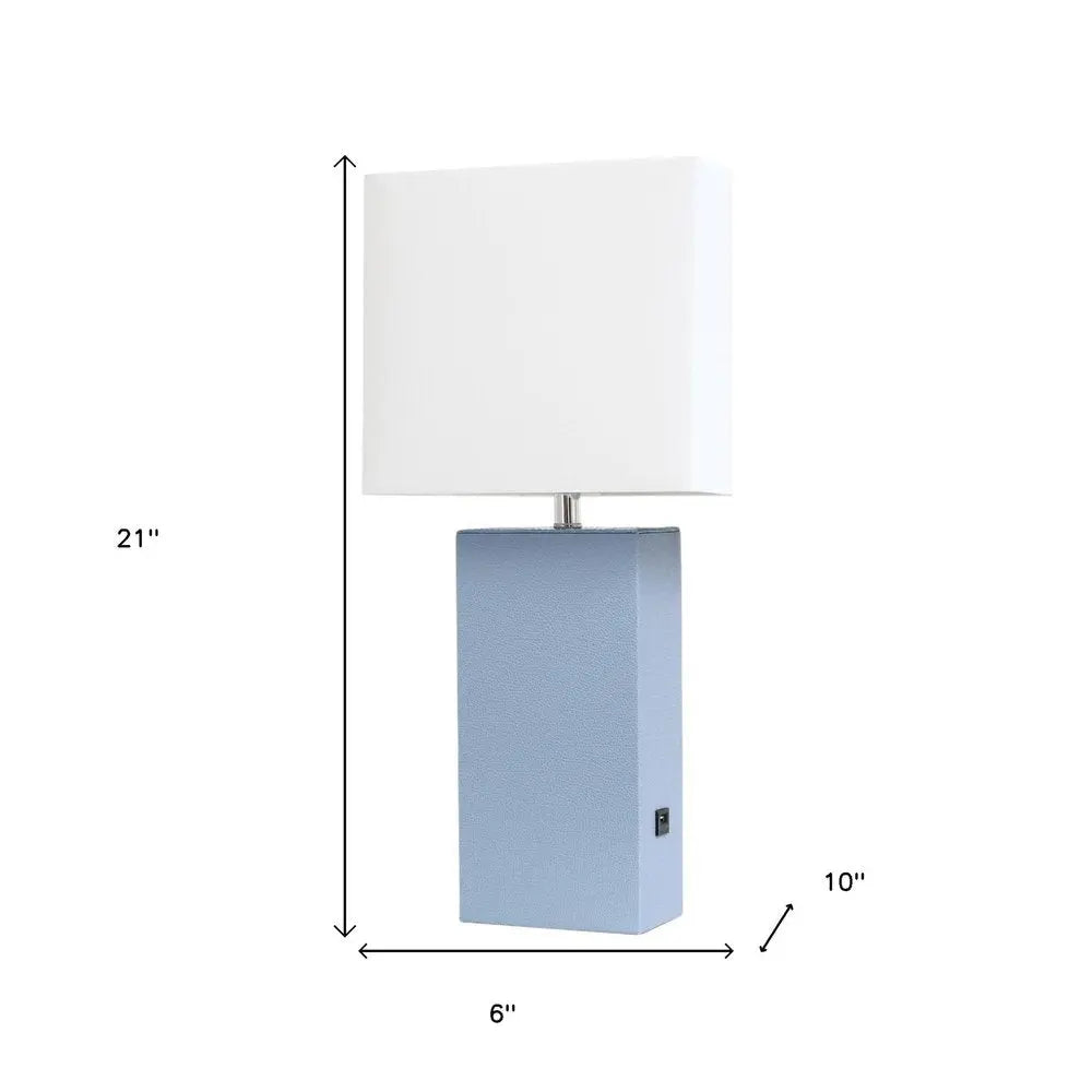 21" Periwinkle Faux Leather USB Table Lamp LED With White Shade