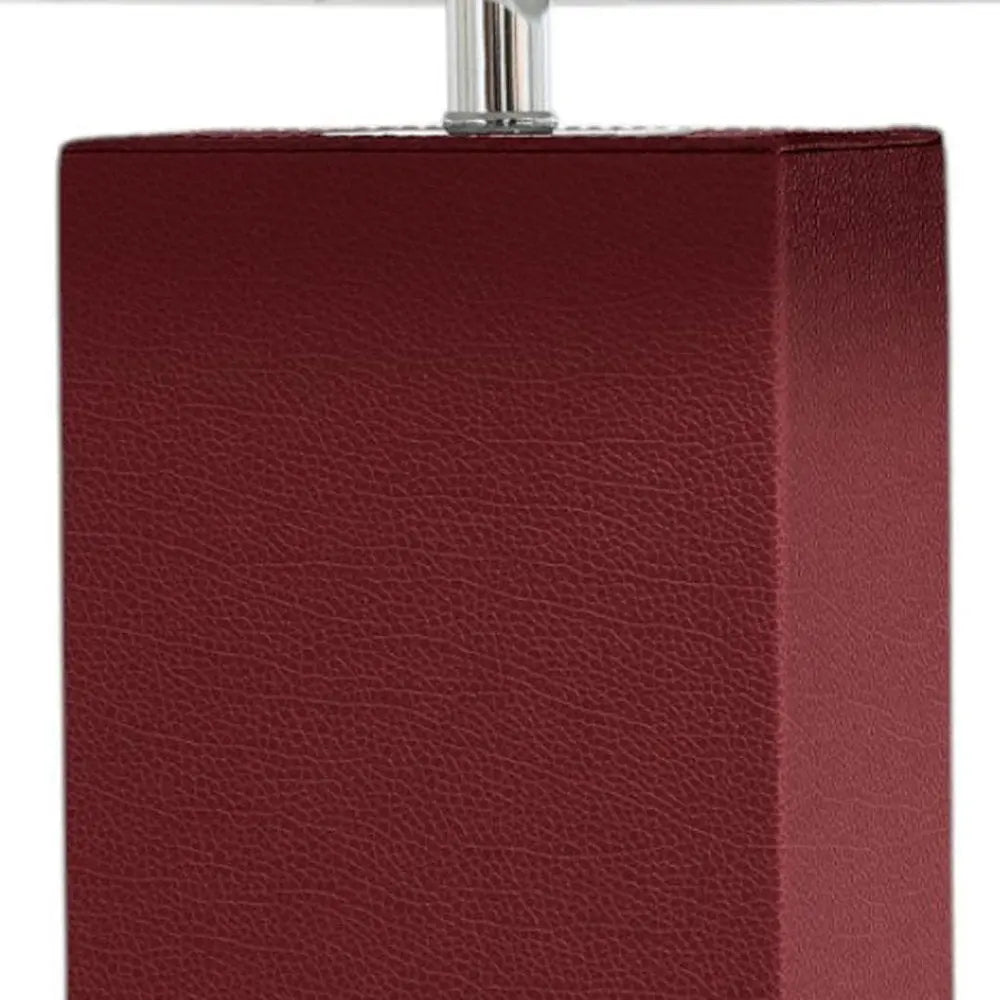 21" Red Faux Leather USB Table Lamp LED With White Shade