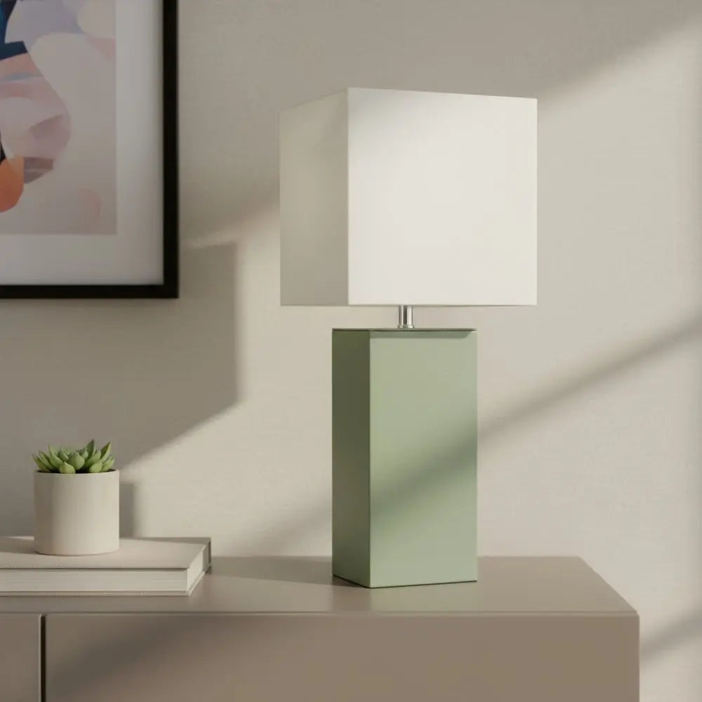21" Sage Faux Leather Table Lamp LED With White Shade