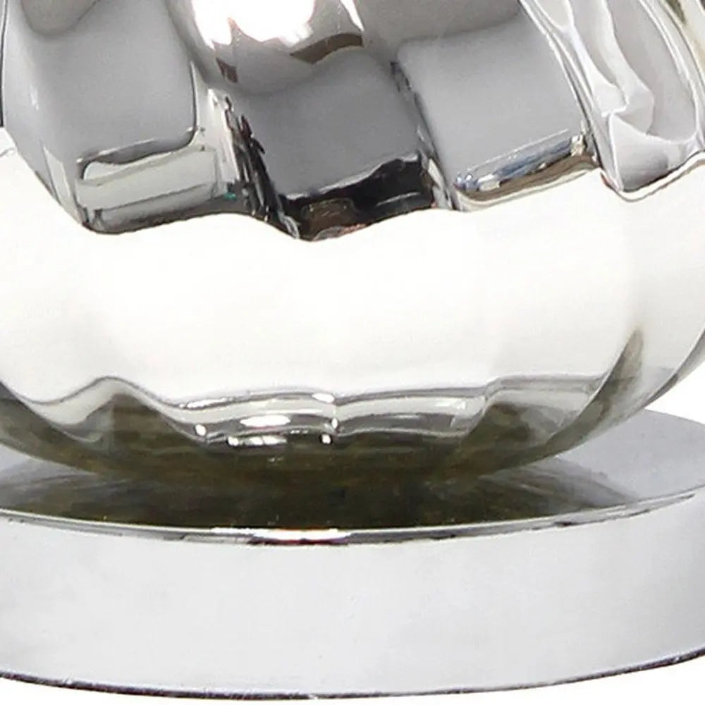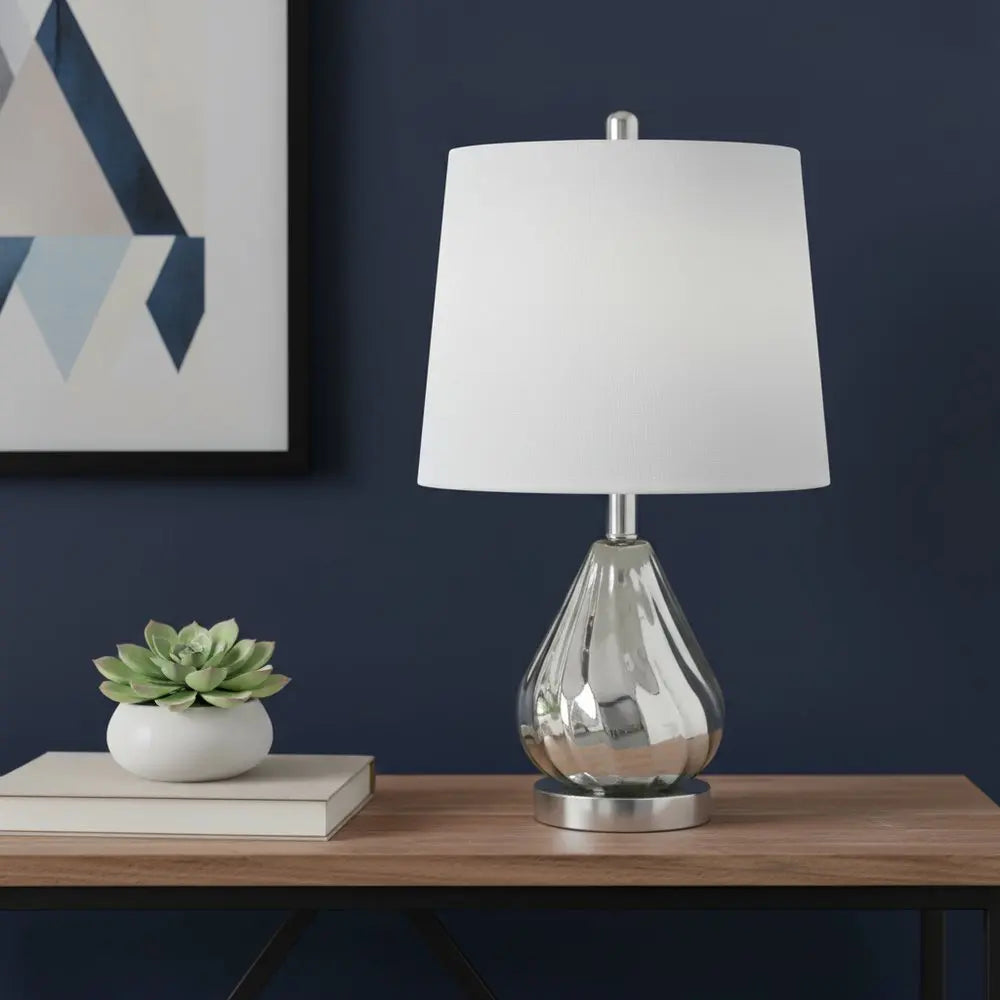 21" Silver Glass And Metal Round Scalloped Table Lamp With White Drum Shade