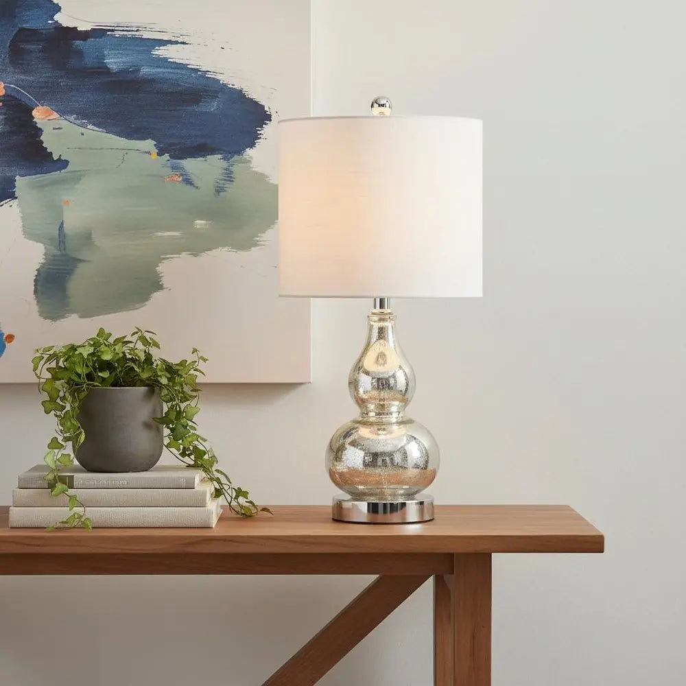 21" Silver Gourd Desk Lamp LED With Drum Shade