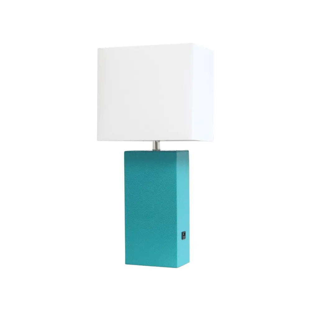 21" Teal Blue Faux Leather USB Table Lamp LED With White Shade