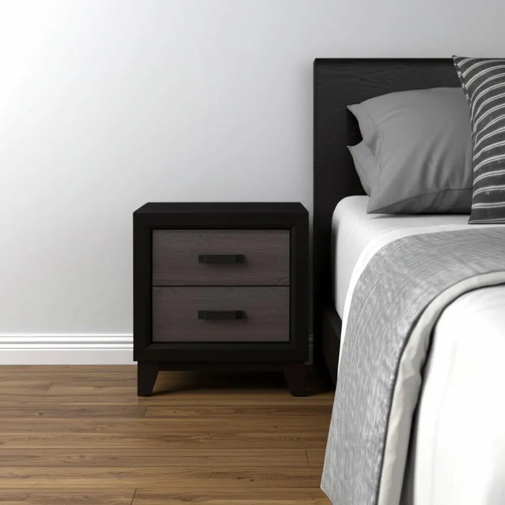 Give your room the look and feel of 5-star accommodations with this 22-inch black and gray wood square two drawer nightstand. Made of high quality manufactured wood that is built to last. The piece has 2 drawers to store your bedtime essentials close to you as you rest. The unsung hero of the bedroom, this nightstand is perfect for keeping a glass of water, lamp, alarm clock, jewelry, and more, close by and easily accessible. Nightstands are obviously great beside the bed but can be used just as easily to help battle clutter in your living room, hallway, office, or dining room. 21.65-inch h x 24.41-inch w x 15.54-inch d.