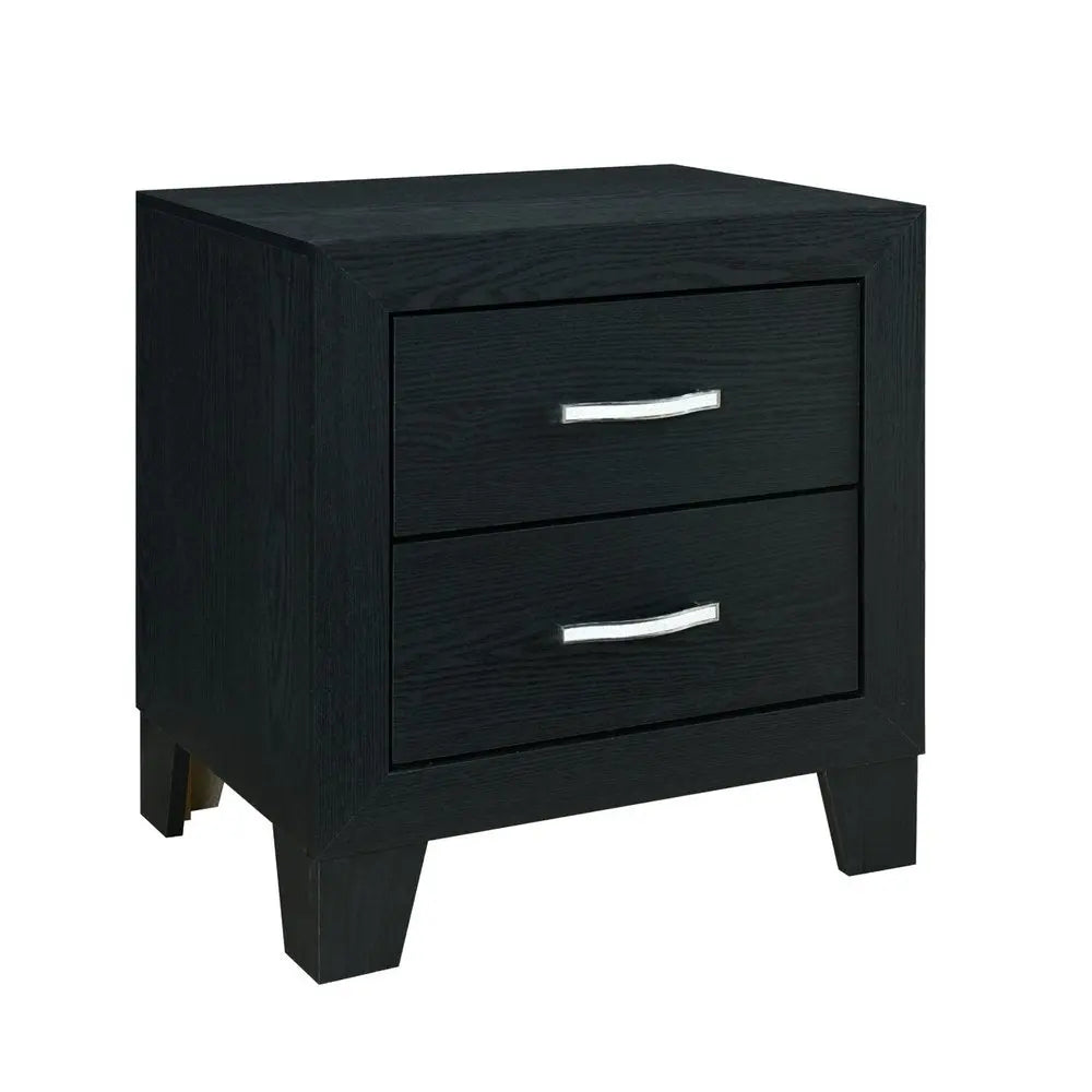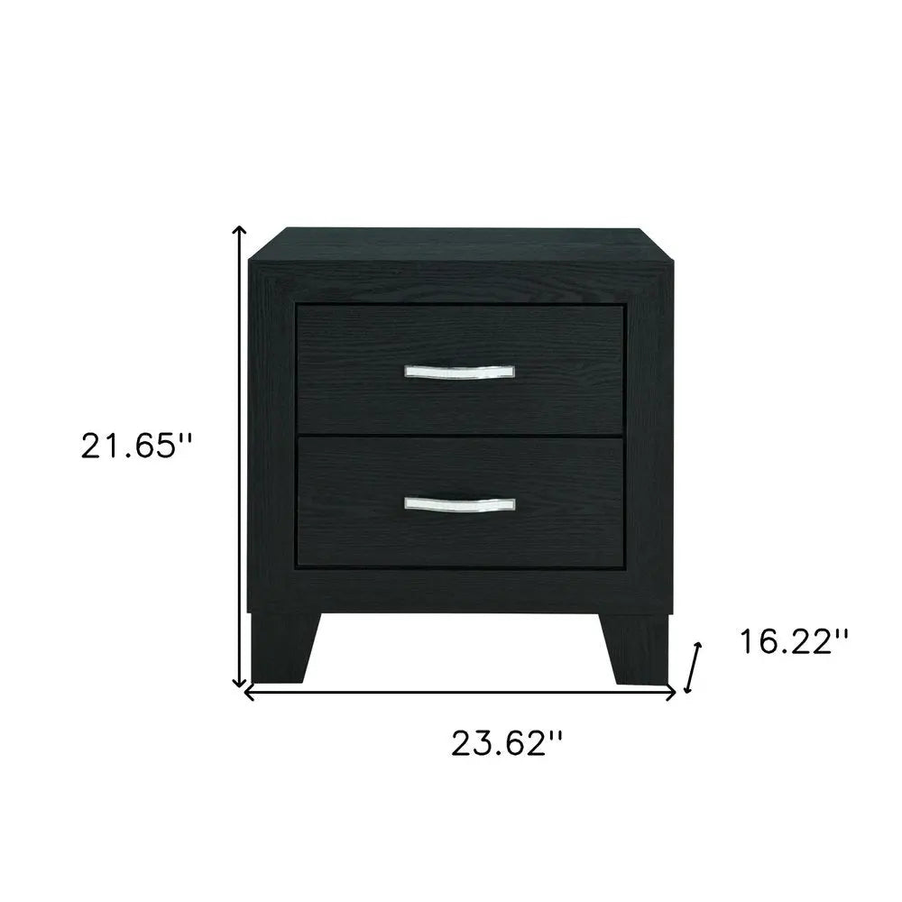 22" Black Solid and Manufactured Wood Two Drawer Nightstand