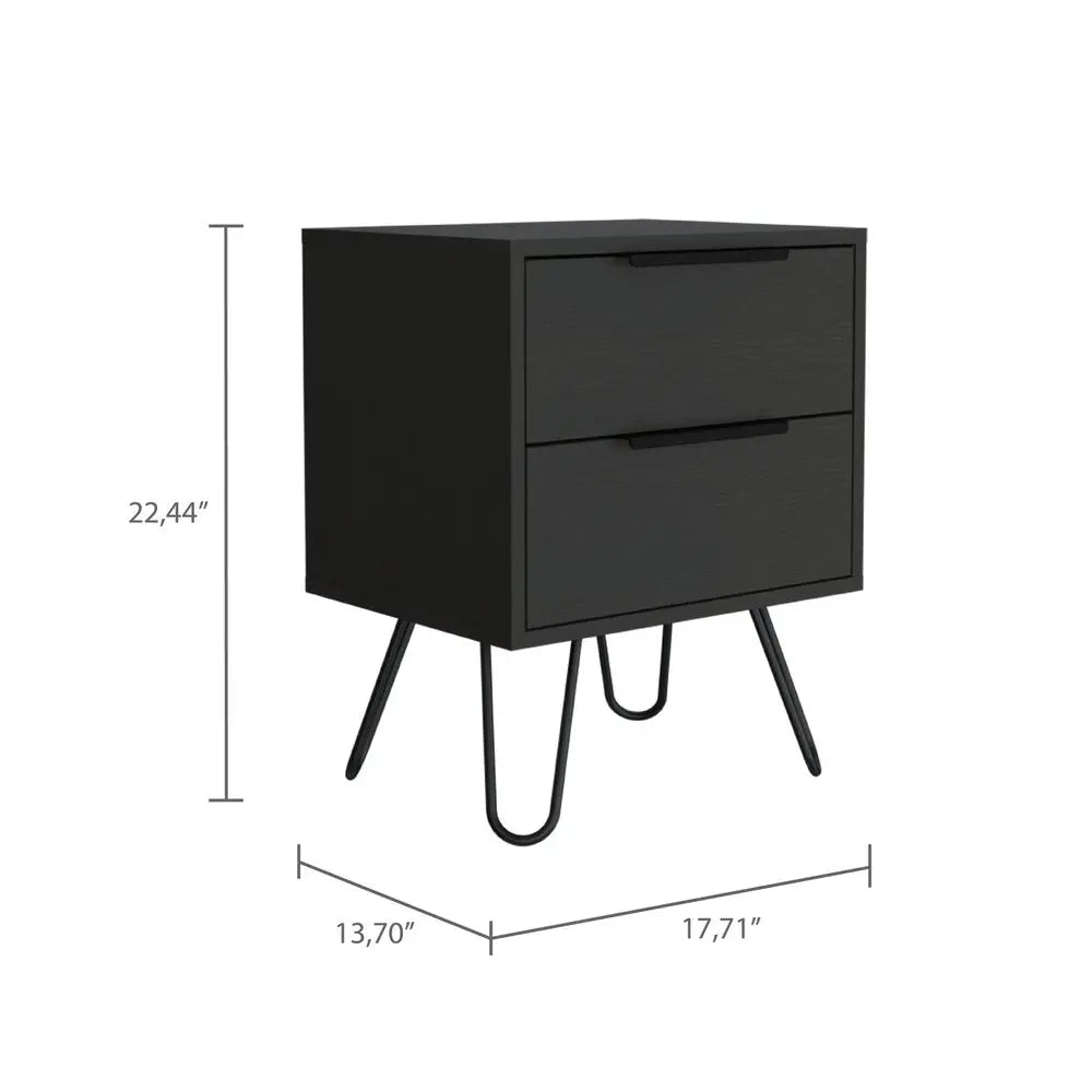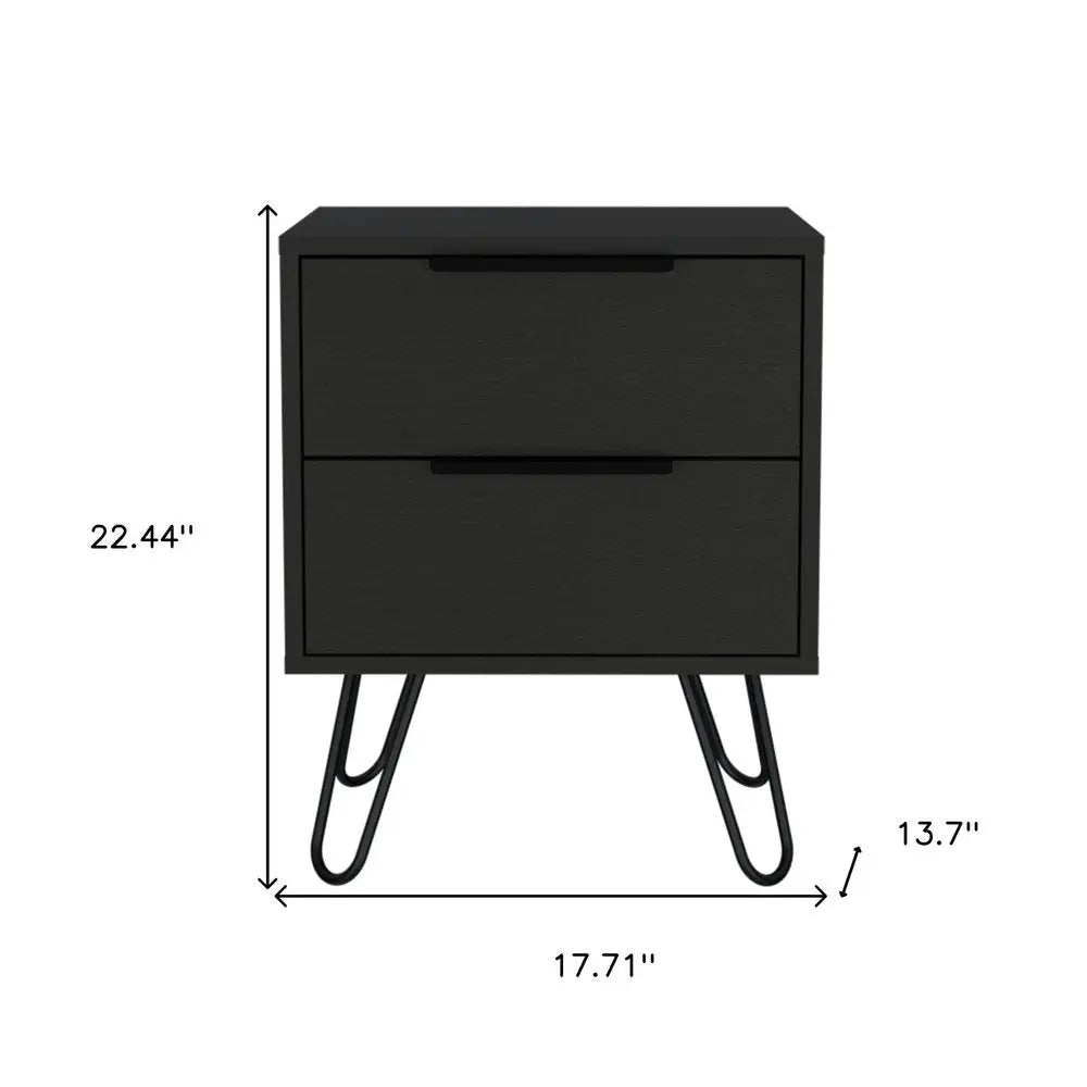 22" Black Wood Two Drawer Nightstand
