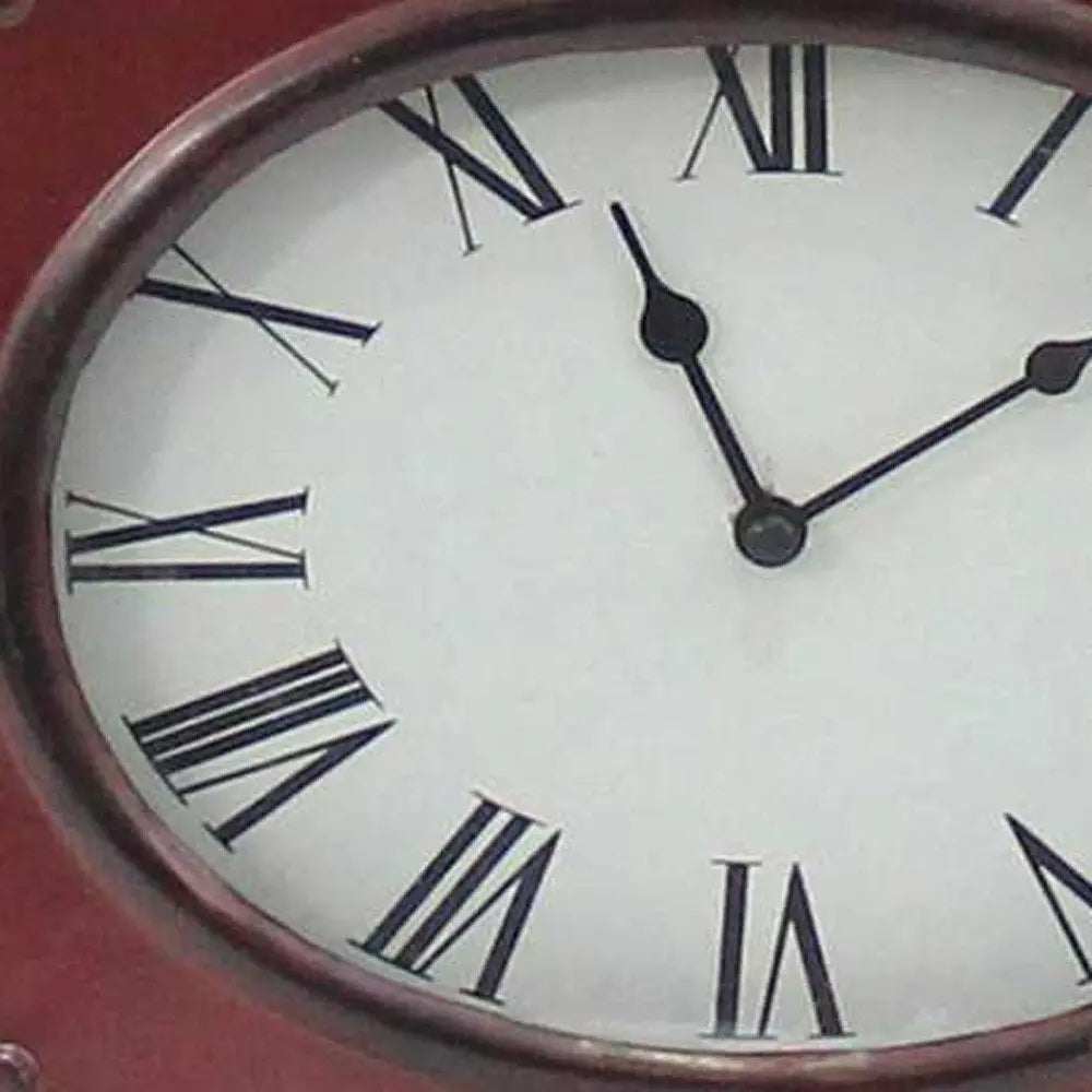 22" Distressed Red Metal Bedside Lamp With Beige Shade