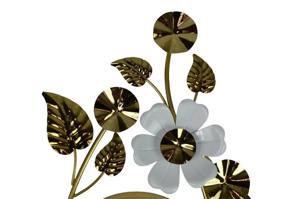 22" Gold And White Metal Silent Analog Floral Novelty Wall Clock