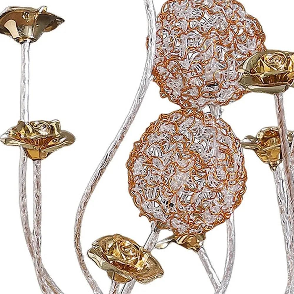 22" Silver And Rose Gold Metal And Acrylic Flowers Bedside Lamp HomeRoots