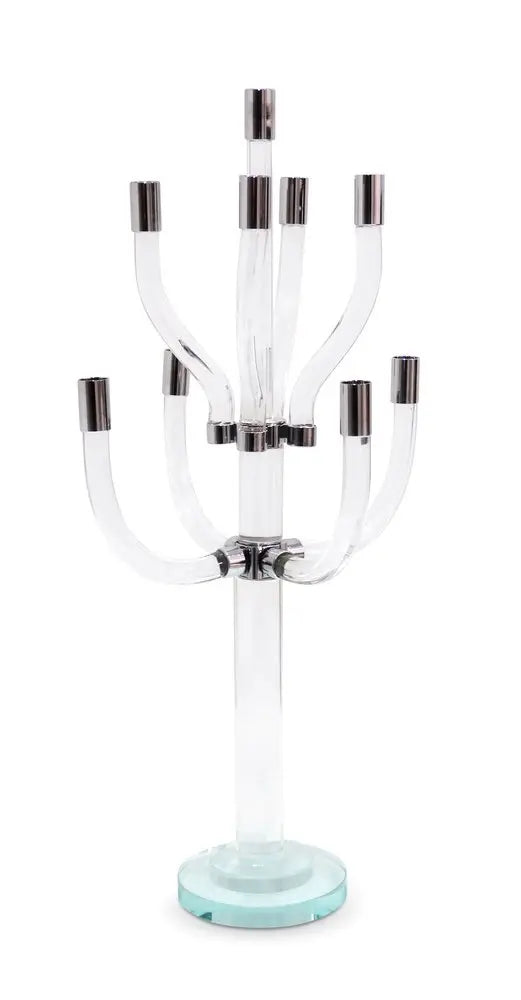 23" Clear And Silver Crystal Tabletop Candelabra Candle Holder