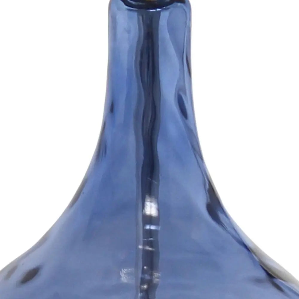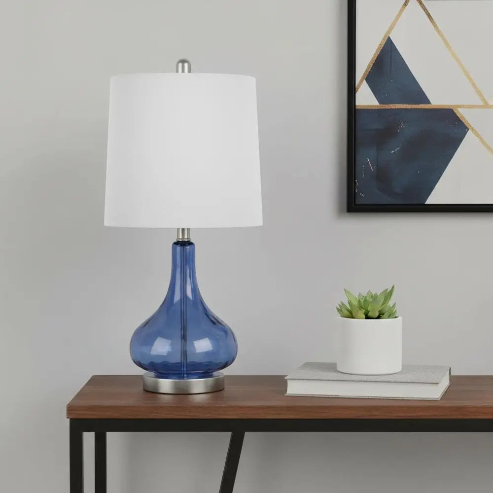 23" Dark Blue And Silver Glass And Metal Novelty Table Lamp With White Drum Shade