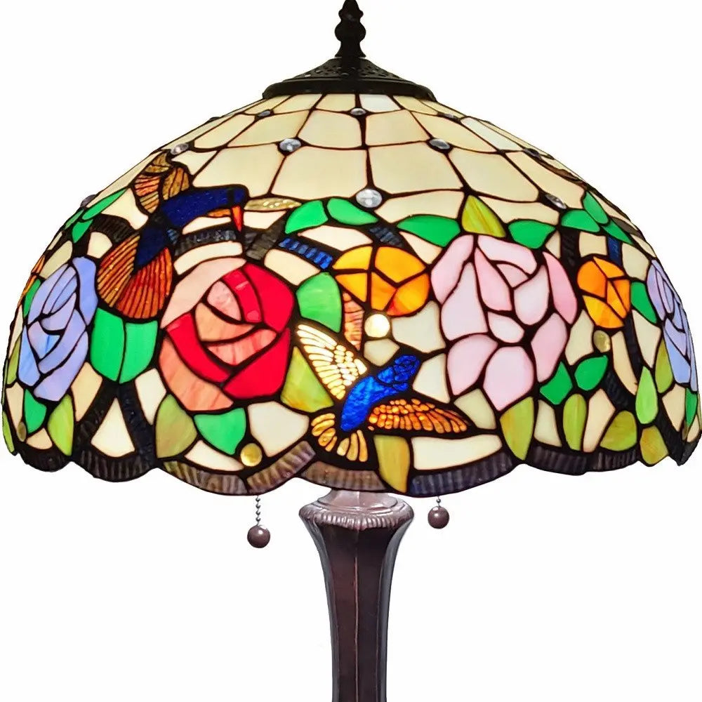 23" Dark Brown Metal Two Light Candlestick Table Lamp With Brown and Ivory Shade