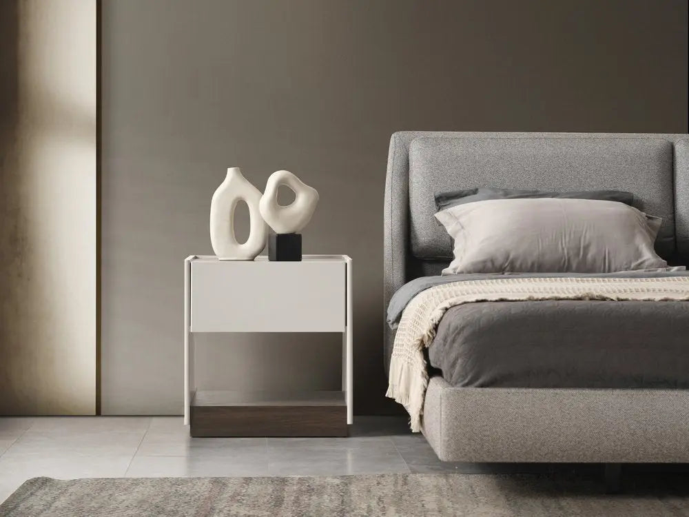 Our 23-inch light gray wood square one drawer nightstand will compliment your bed beautifully. Sturdy and durable construction from manufactured wood ensures this trusty bedside table is built to last. Includes a drawer to help keep your essentials close by and hidden. An easy-access shelf gives you additional storage and display space. The unsung hero of the bedroom, this nightstand is perfect for keeping a glass of water, lamp, alarm clock, jewelry, and more, close by and easily accessible. Versatile in use this nightstand would also work as a great end table in the living room, hallway, or office. 23.00-inch h x 22.00-inch w x 19.00-inch d.