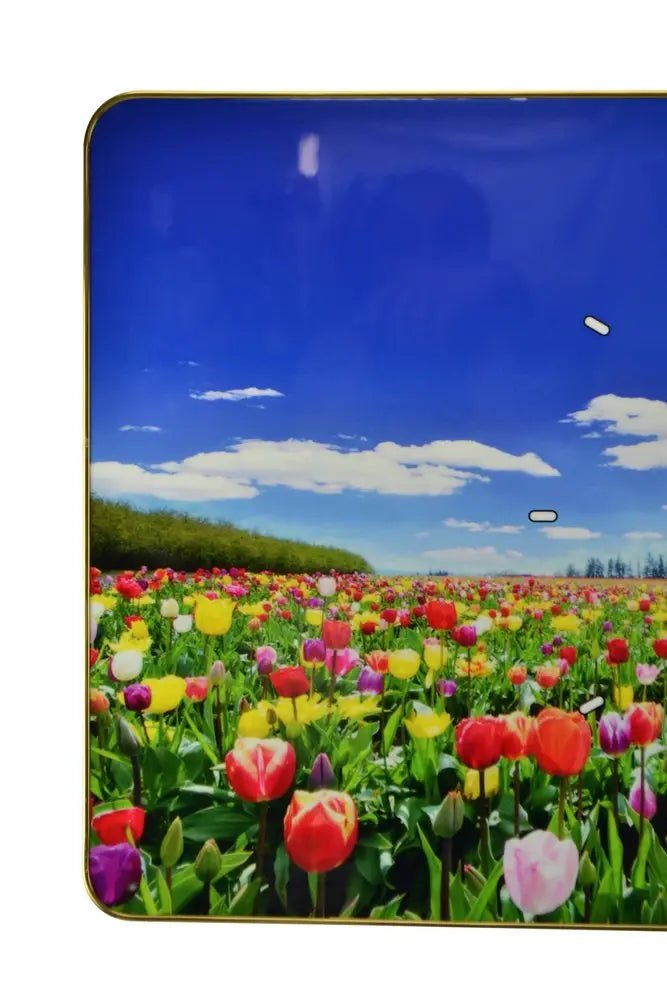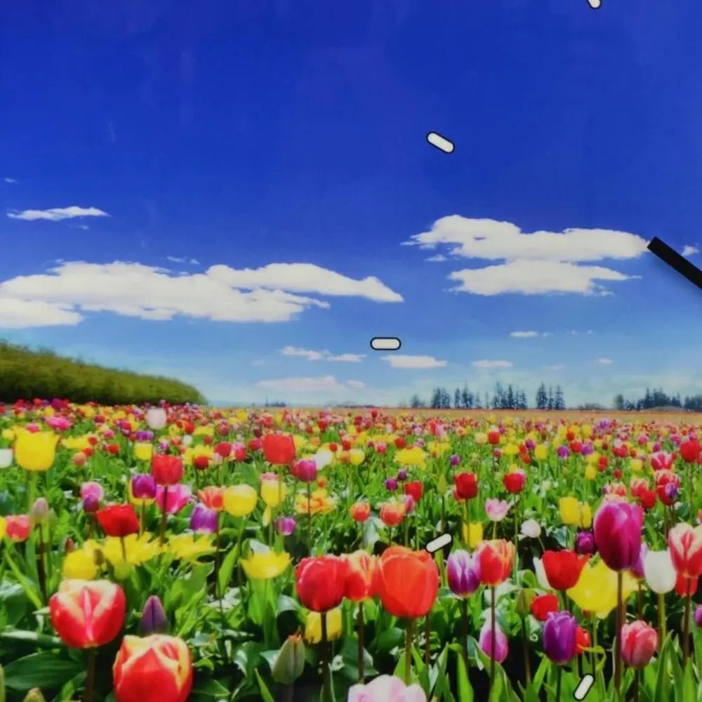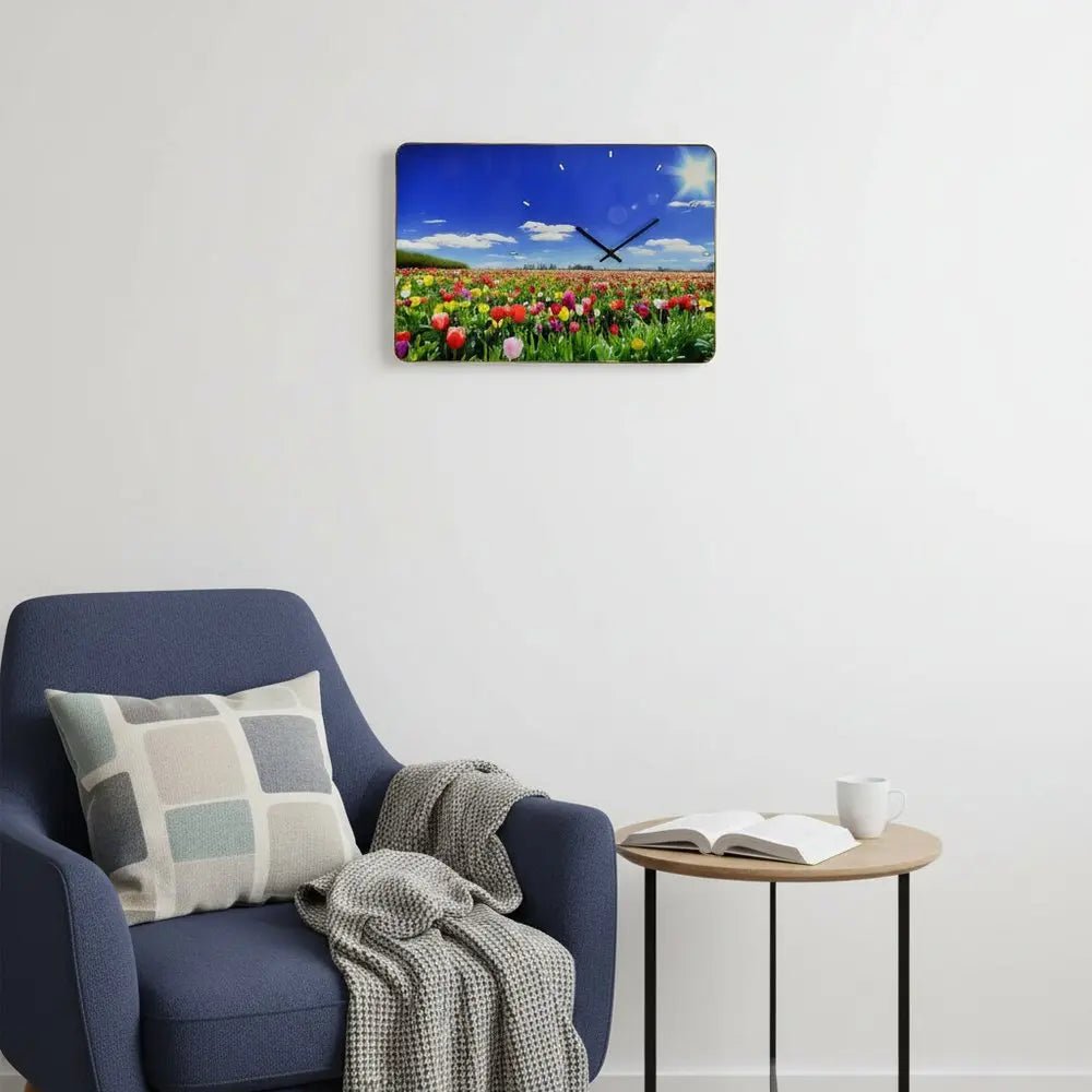 24" Blue Red And Gold Solid Wood and Acrylic Silent Tulips Floral Wall Clock