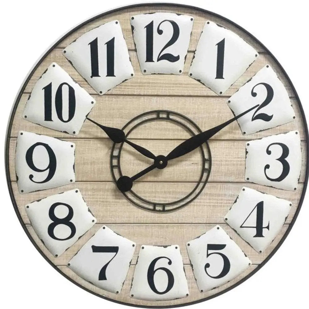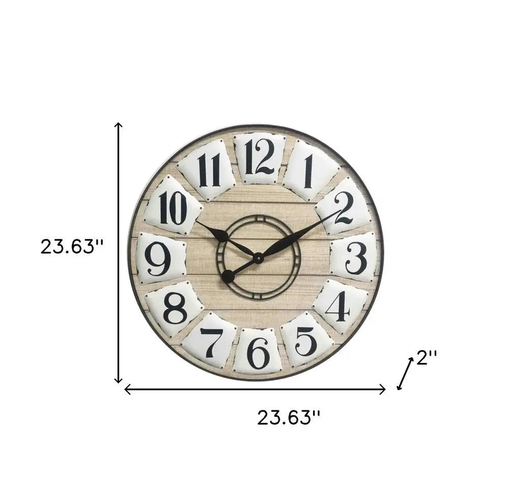 24" Circle Black and White Wood Analog Wall Clock