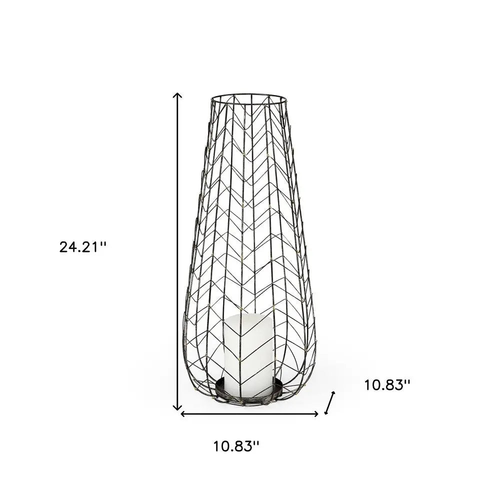 24" Gold Distressed Lattice Metal Tabletop Hurricane Candle Holder