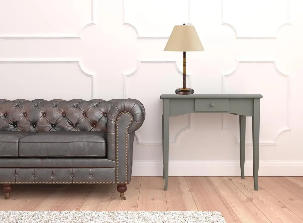 24" Rustic Bronze and Oak Metal Table Lamp With Brown Empire Shade