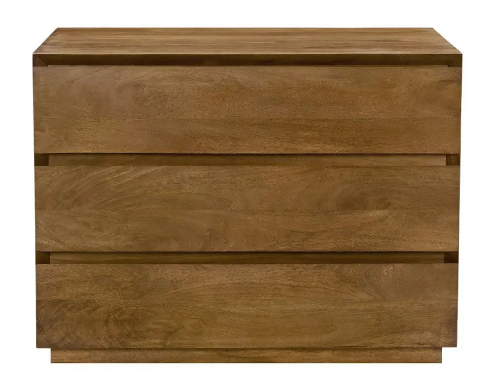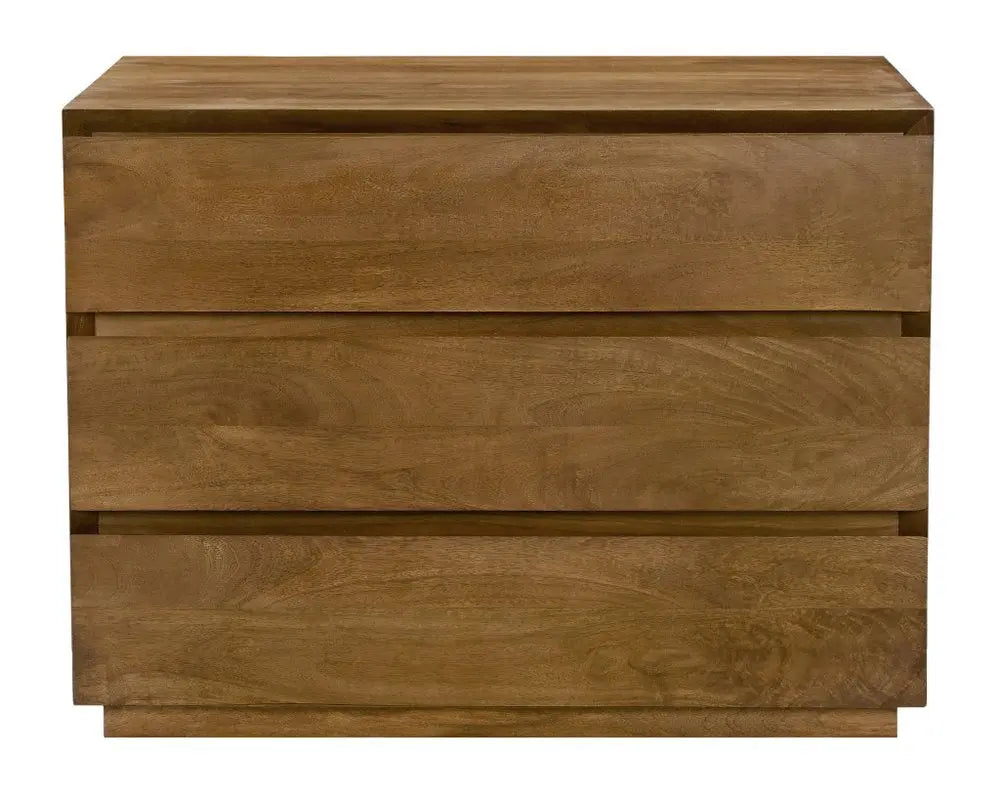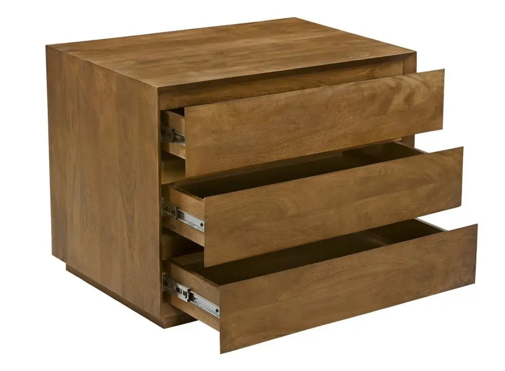 24" Tan Solid Wood Distressed Three Drawer Nightstand