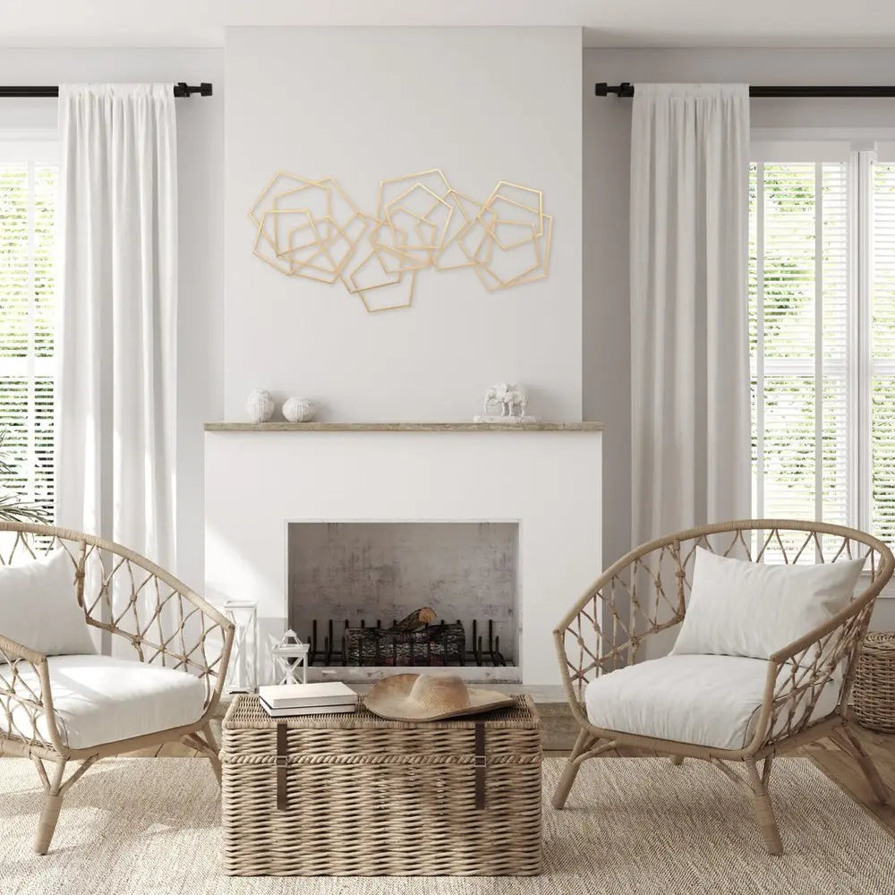 24" X 48" Gold Metal Abstract Lines Hanging Dimensional Sculpture
