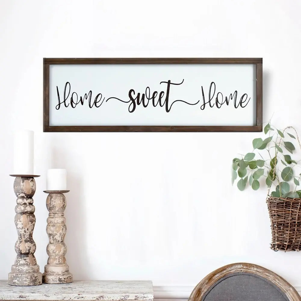 24" X 9" White And Black "Bless", "Stay A While", "Home Sweet Home" Wood Wall Decor