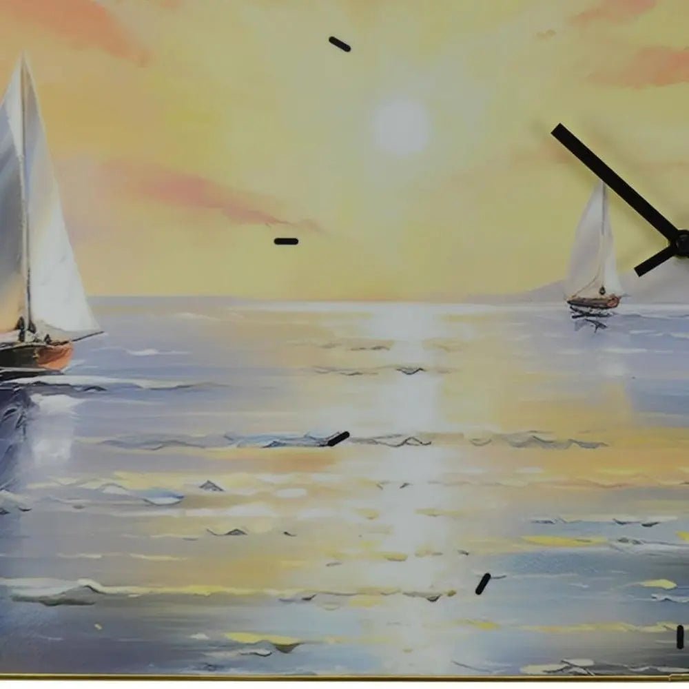 This 24-inch yellow blue and orange solid wood silent analog wall clock includes three moving hands on the face that move smoothly to indicate the hour, minute and seconds. Features a practical, straight-edged rectangle shape. The clock face not only looks good but is made from sturdy acrylic that will stand the test of time. Elevate the decor of any room in your house. The eye-catching makeup of this clock will ensure that you never run late again. 15.50-inch h x 23.50-inch w x 1.50-inch d.