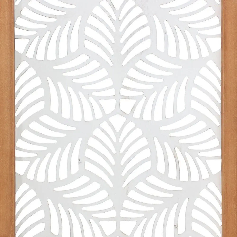 25" X 10" White and Natural Leaf Floral Wood and Metal Wall Decor