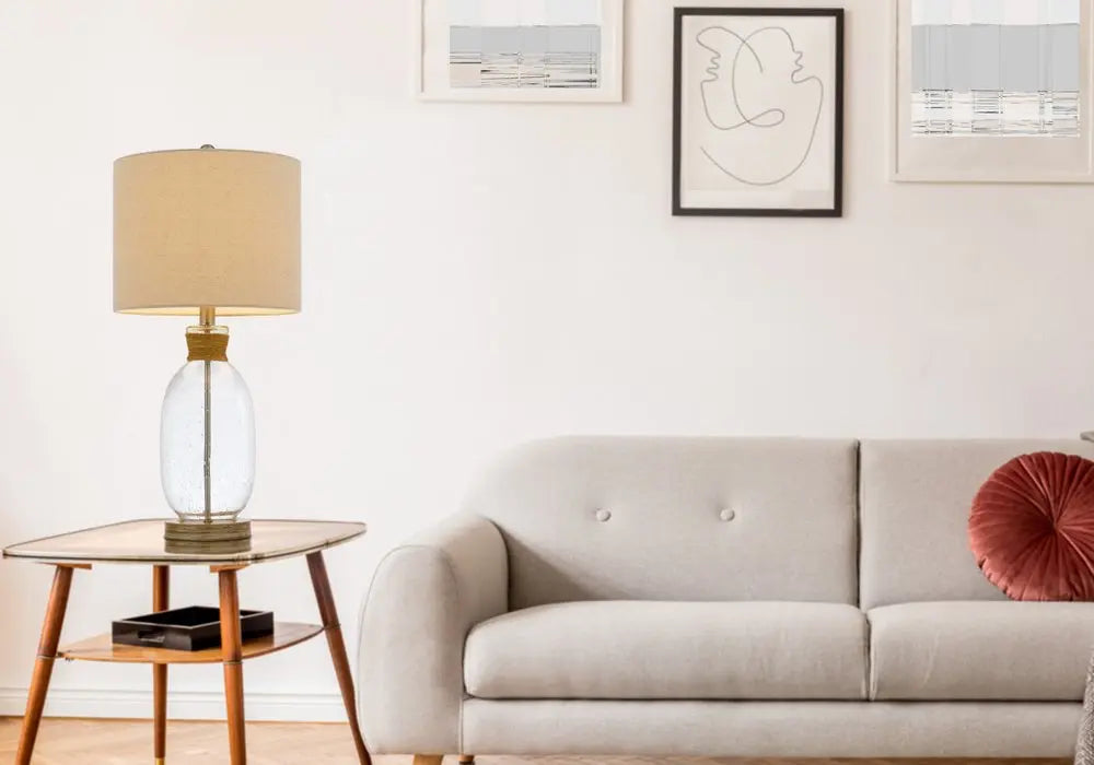 26" Brown Mason Jar Table Lamp With Brown Drum Shade