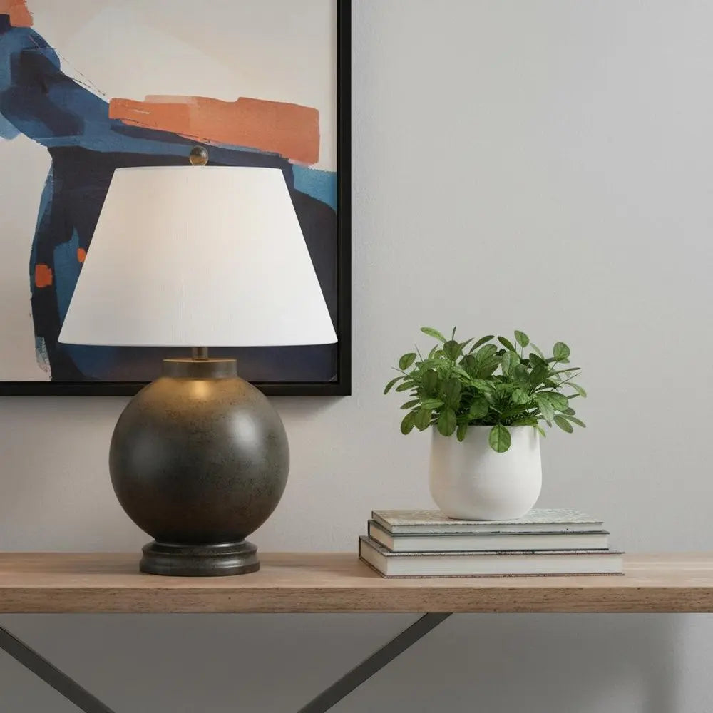 26" Dark Gray Novelty Table Lamp LED With Drum Shade