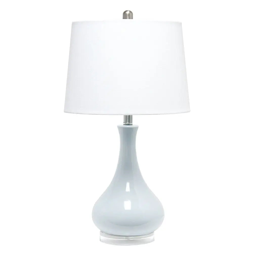 26" Light Blue Ceramic Round Table Lamp With White Drum Shade