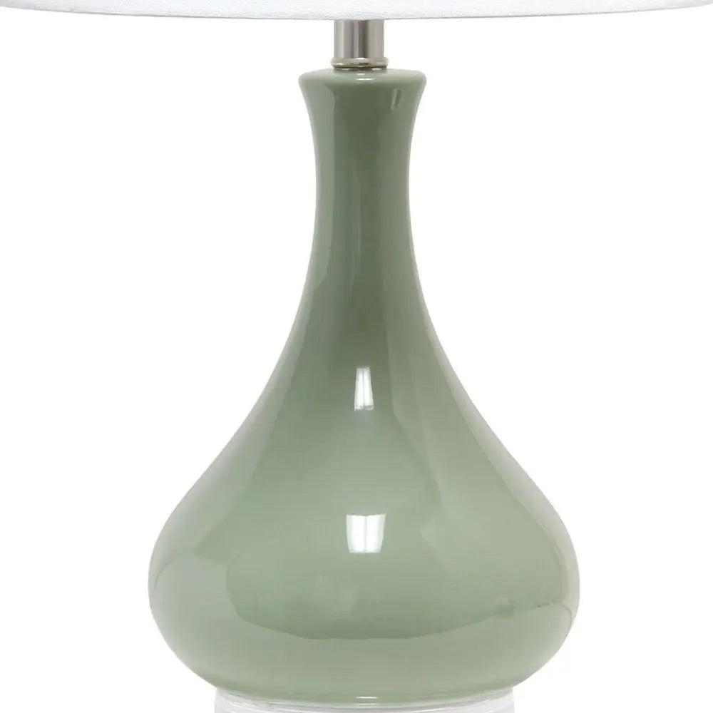 26" Sage And Clear Ceramic Novelty Table Lamp With White Drum Shade