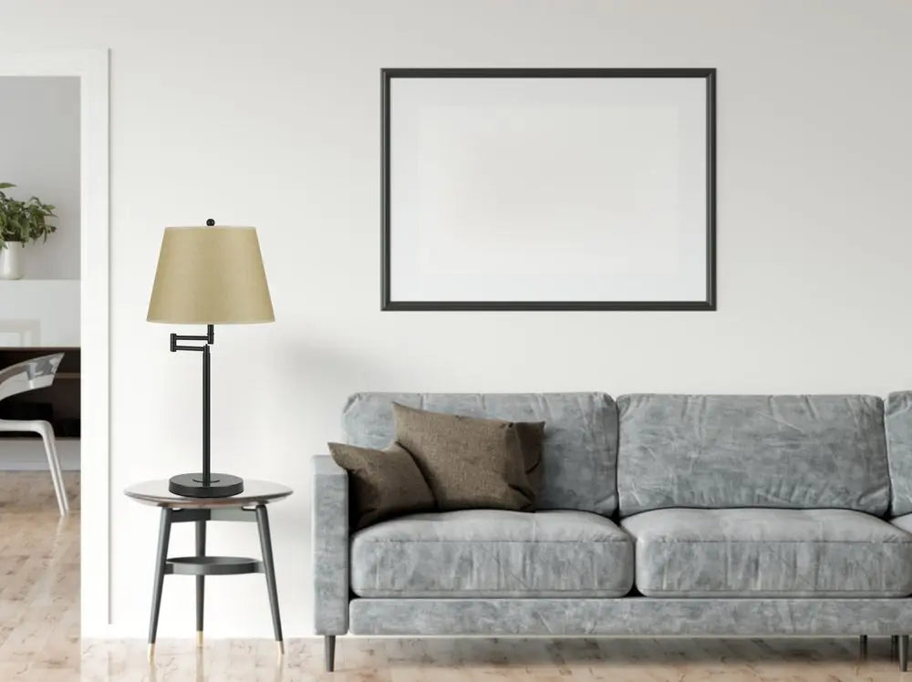 27" Bronze Metal Table Lamp With Tan Empire Shade
