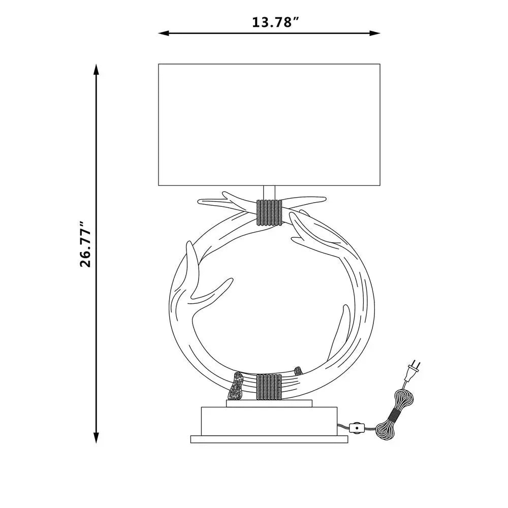 27" Brown Rustic Faux Antlers Table Lamp With White Drum Shade