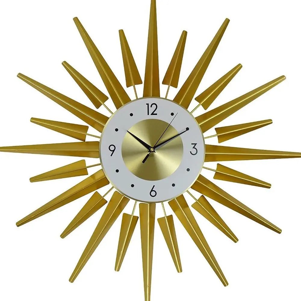 27" Gold And White Metal Silent Analog Sunburst Wall Clock