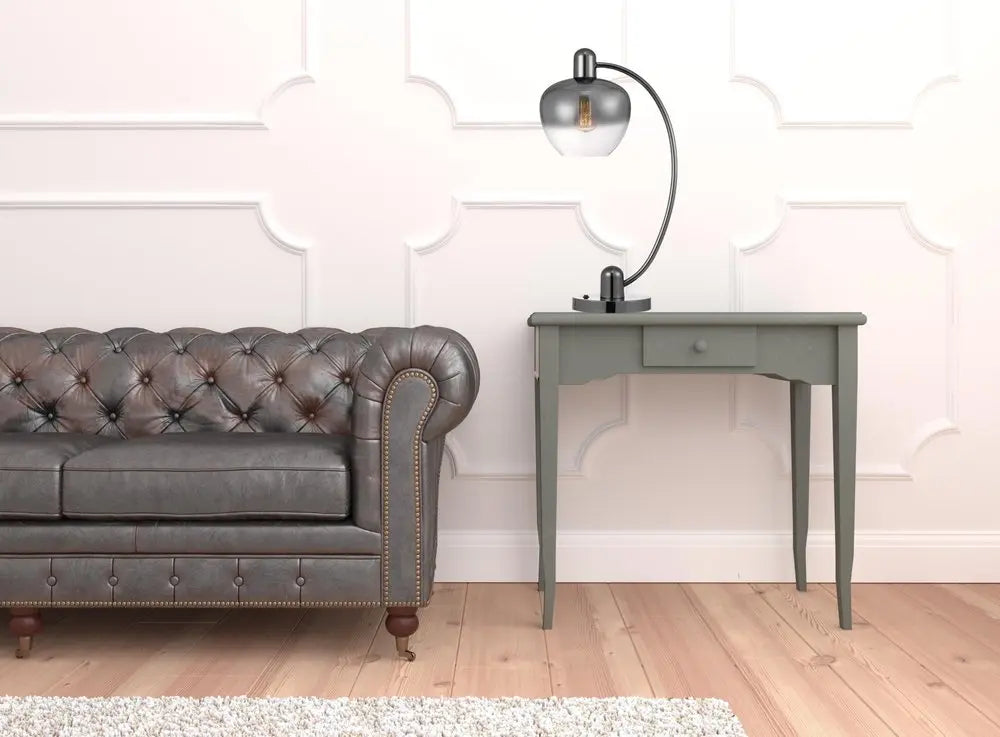 27" Gunmetal Metal Table Lamp With Silver Metallic Globe Shade