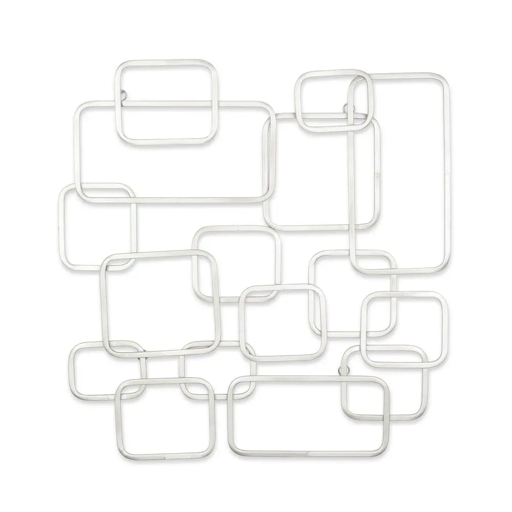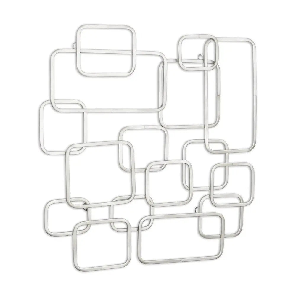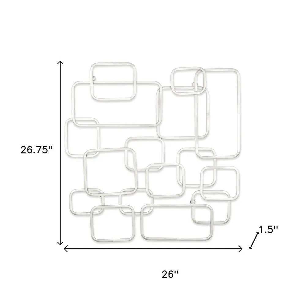 27" X 26" Silver Geometric Metal Abstract Hanging Dimensional Sculpture