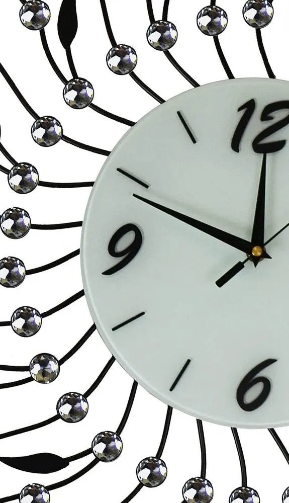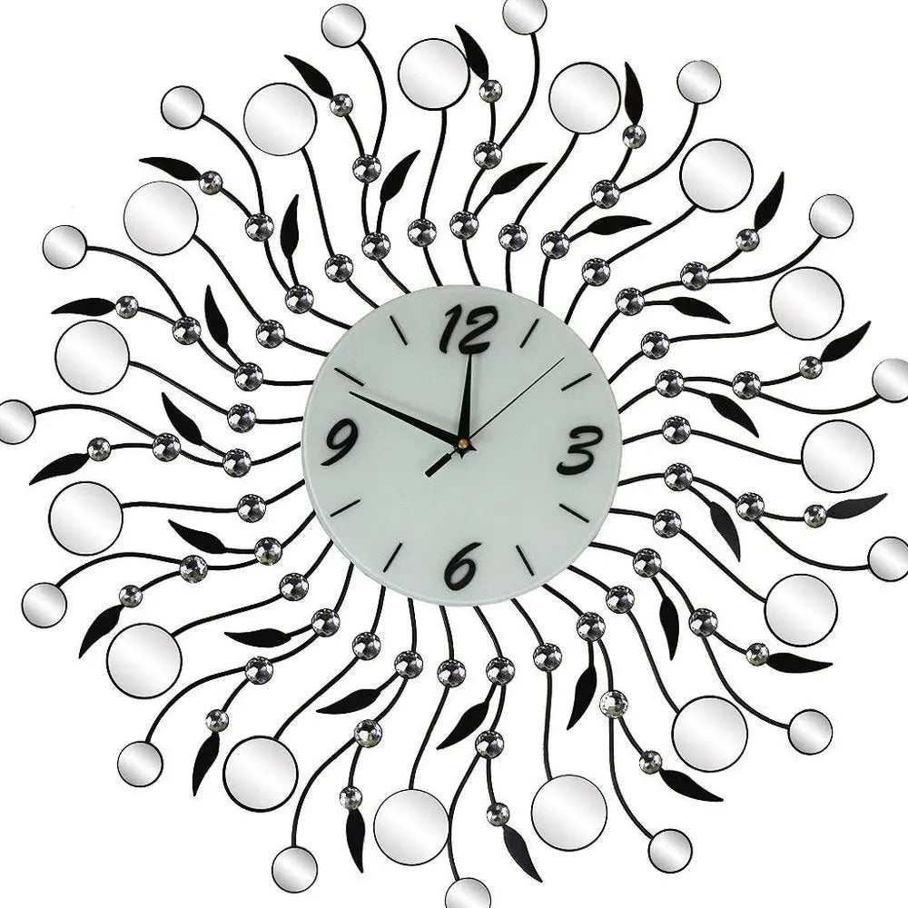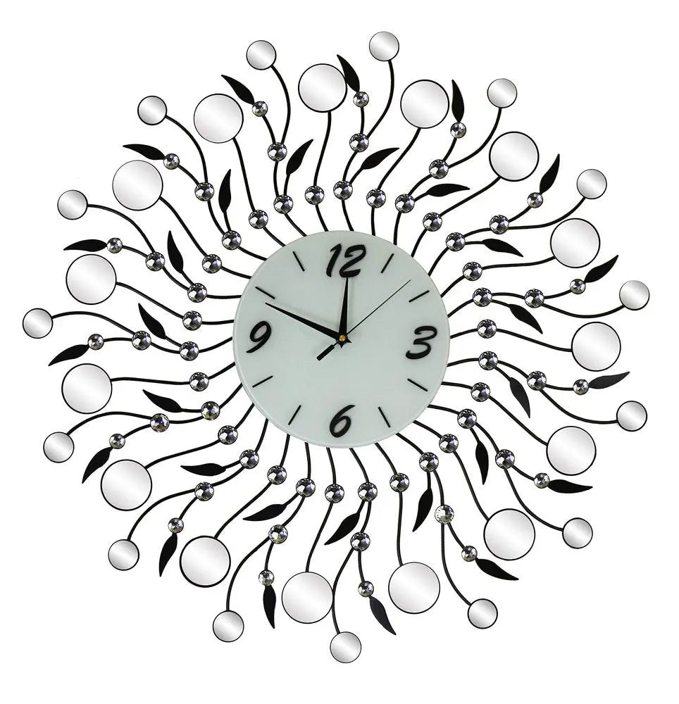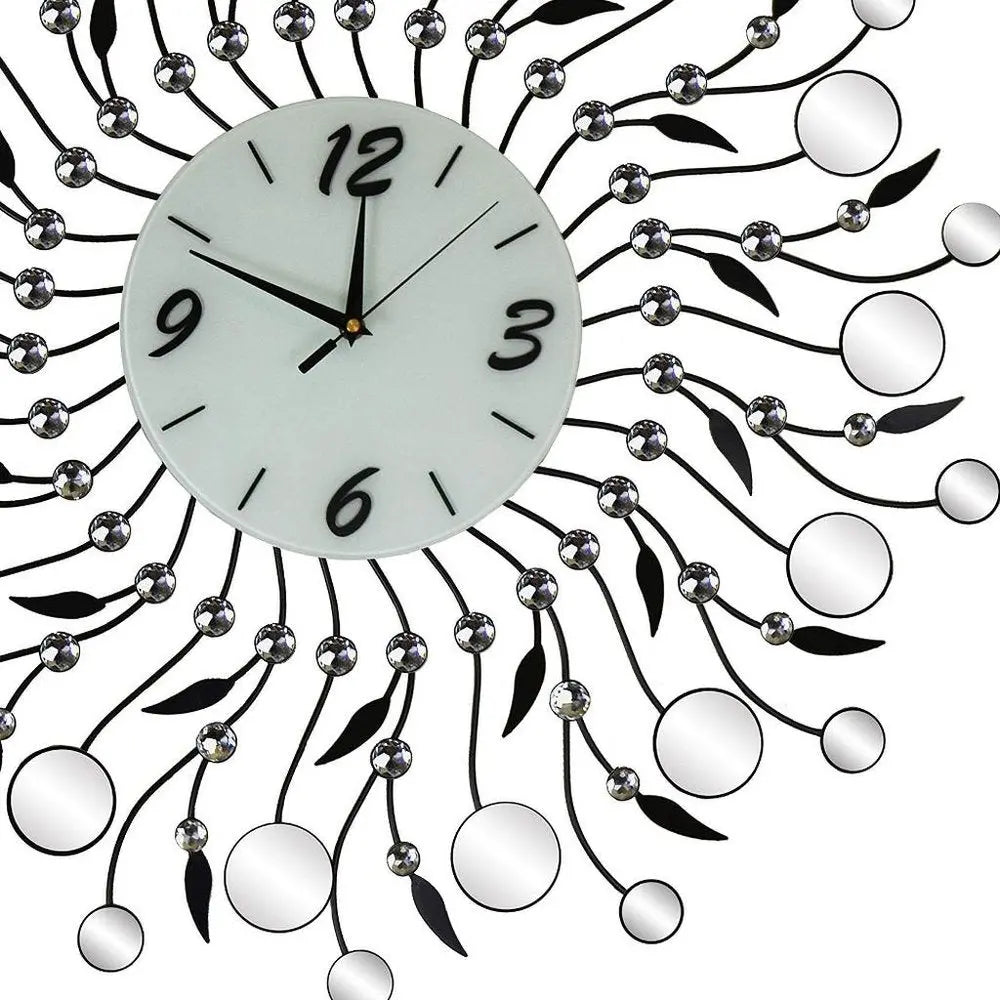 28" Silver Black And White Metal And Mirrored Glass Silent Analog Round Wall Clock