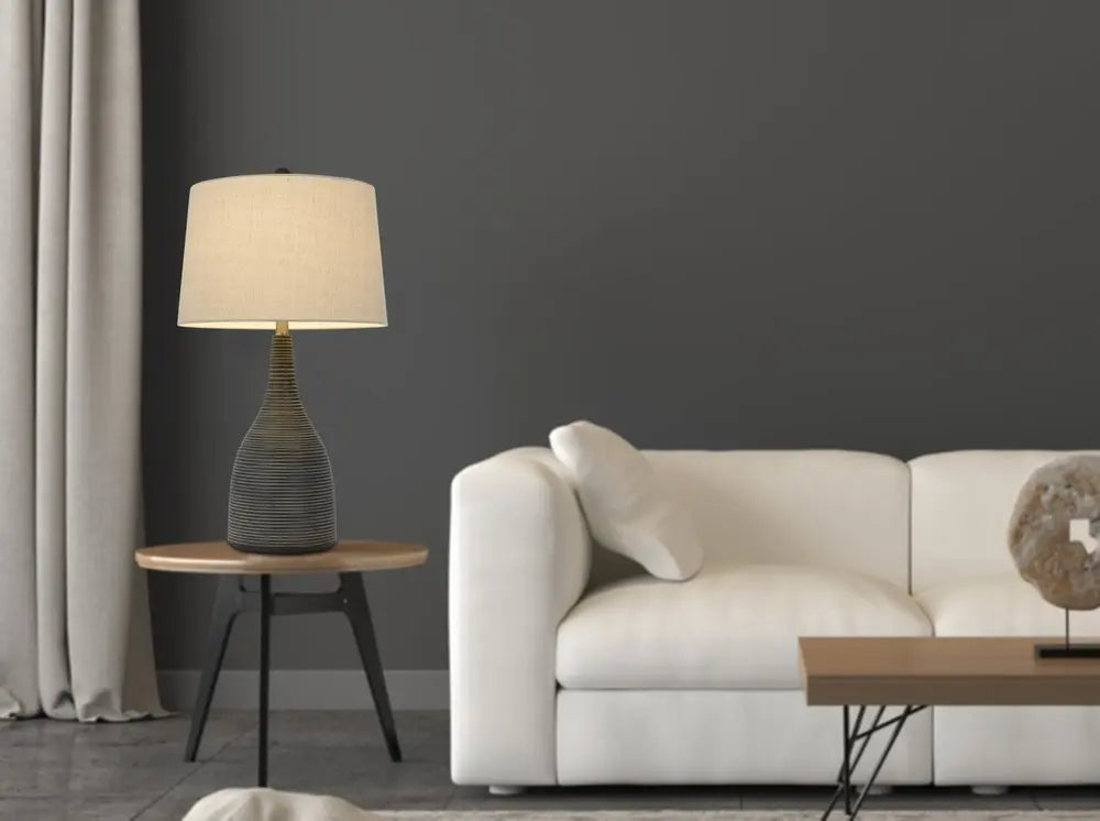 29" Black Ceramic Round Table Lamp With Beige Empire Shade