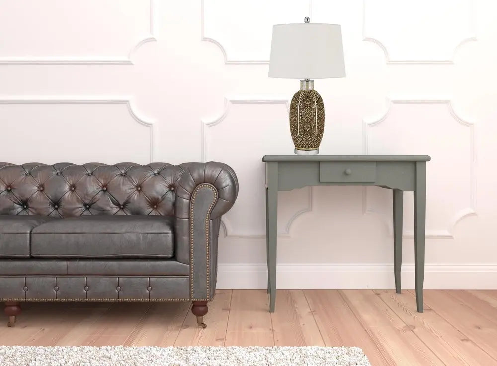 29" Brown Metal Table Lamp With Off White Empire Shade