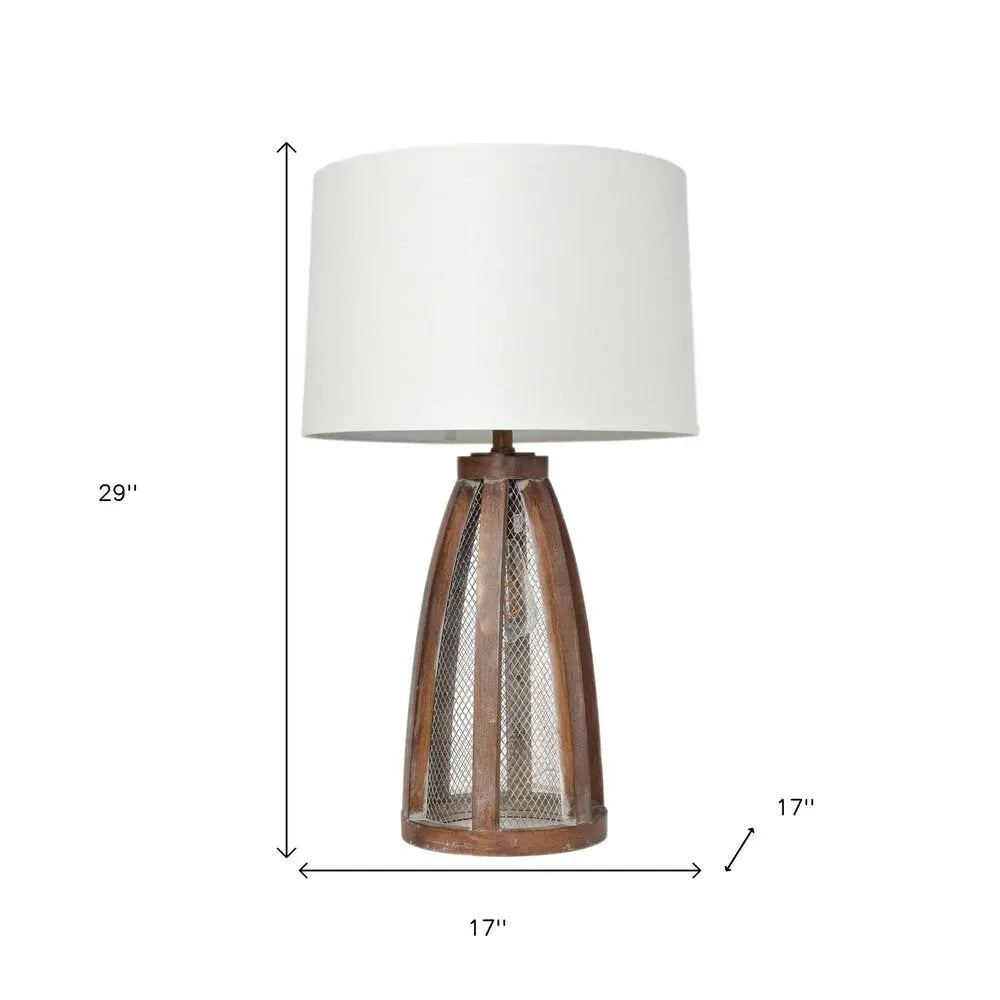 29" Natural Manufactured Wood And Metal Round Table Lamp With White Drum Shade