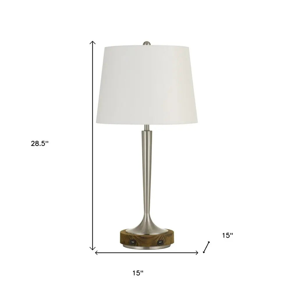 29" Nickel Metal Usb Table Lamp With Off White Empire Shade HomeRoots