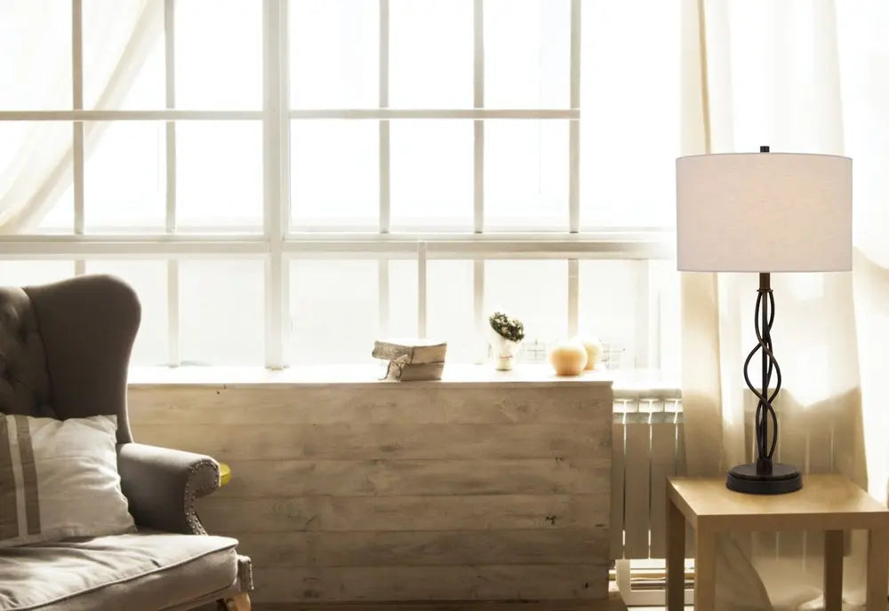 30" Black Metal Candlestick Table Lamp With Off White Drum Shade