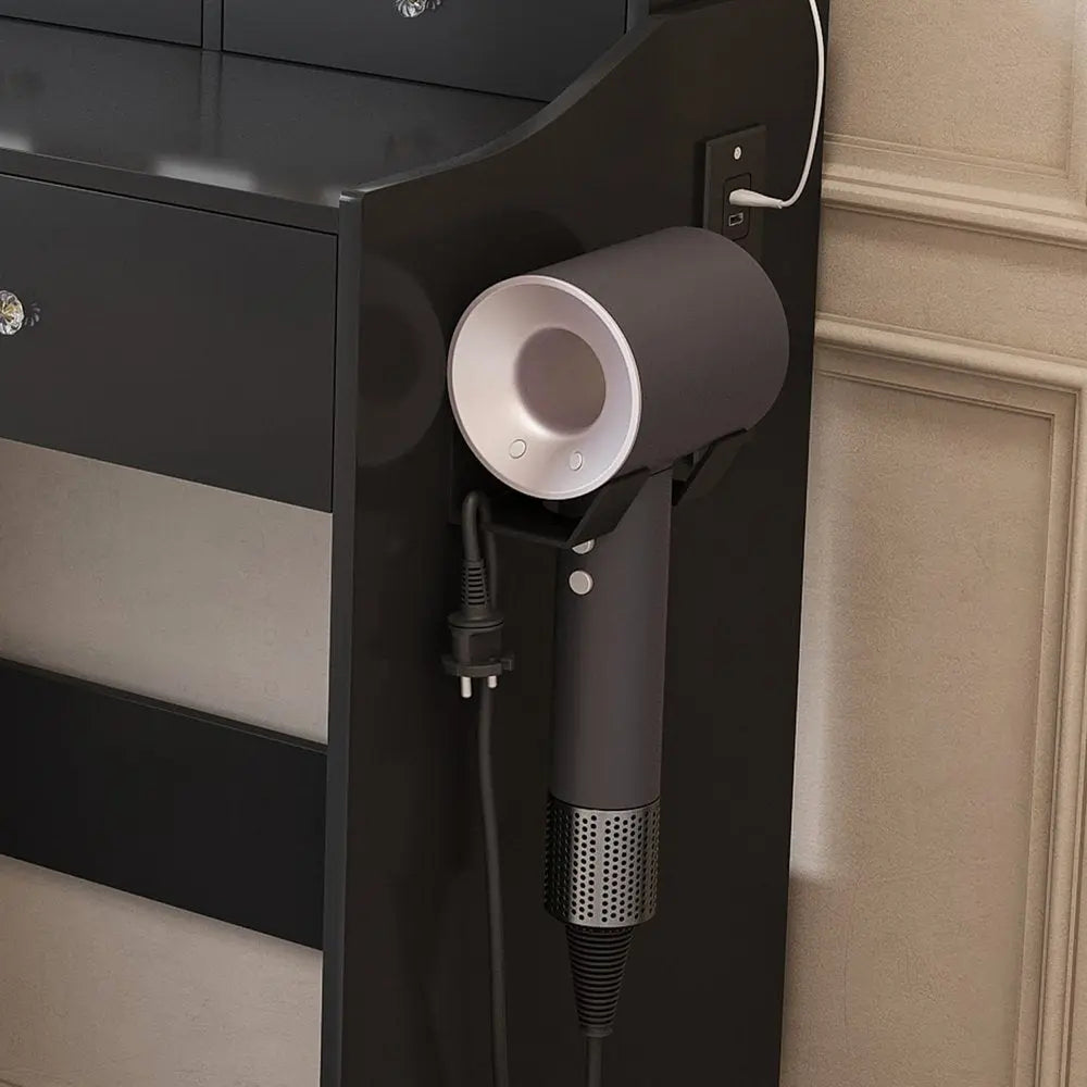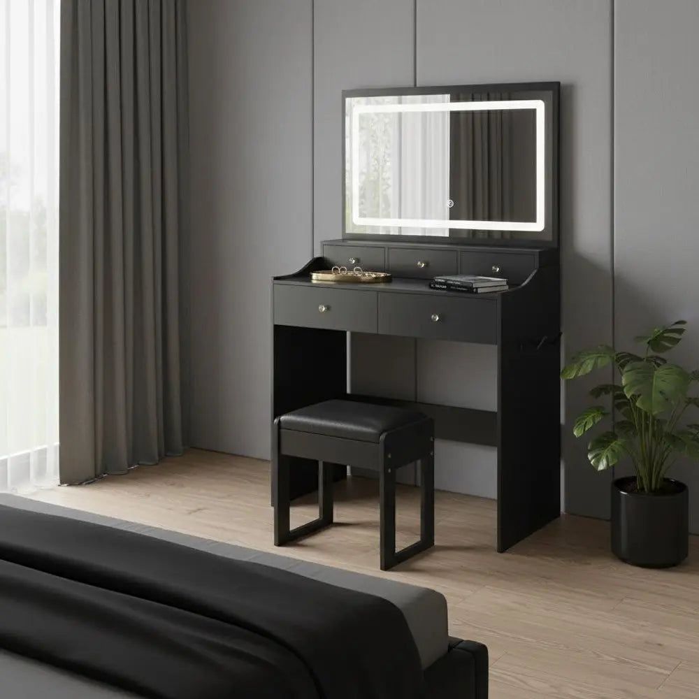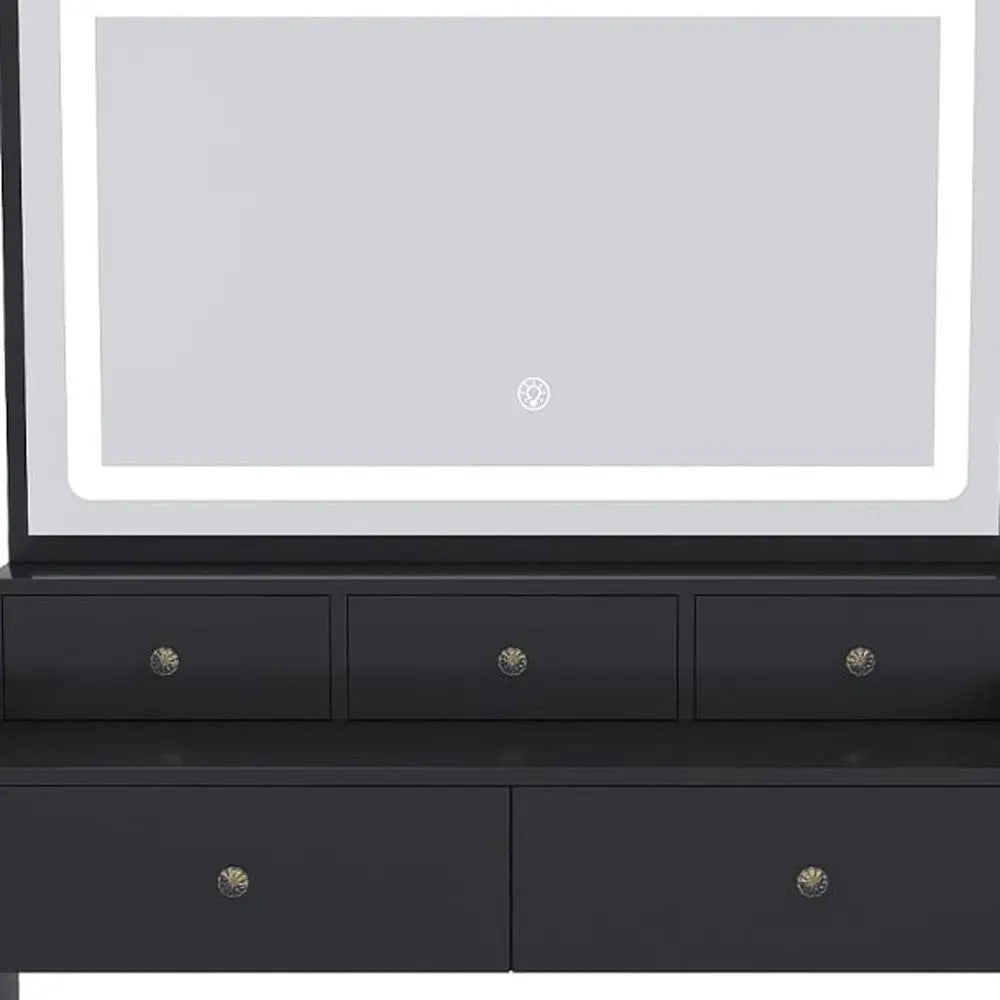 30" Black Wood Lighted Five Drawer Dresser
