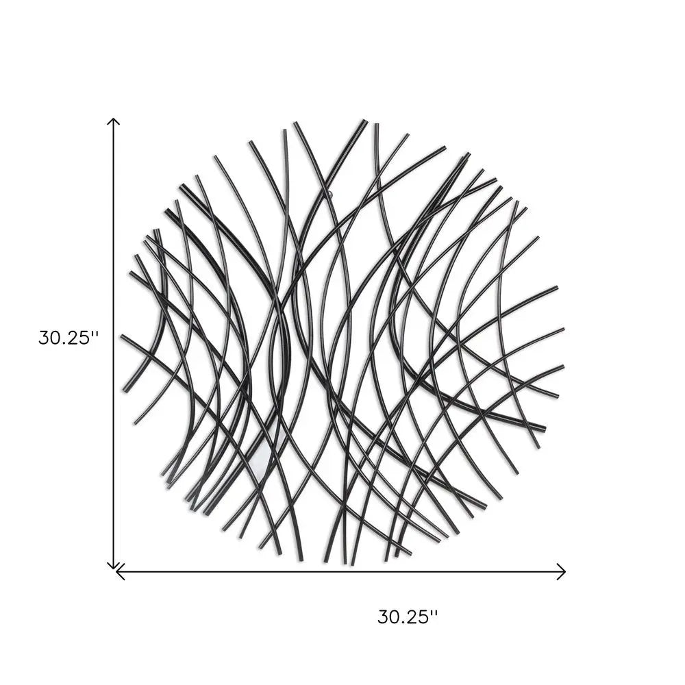 30" X 30" Black Metal Circle Abstract Hanging Dimensional Sculpture