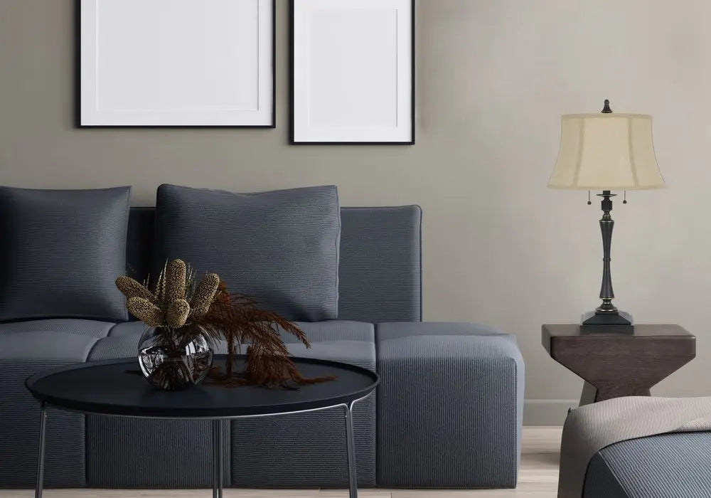 31" Black Metal Two Light Candlestick Table Lamp With Beige Empire Shade