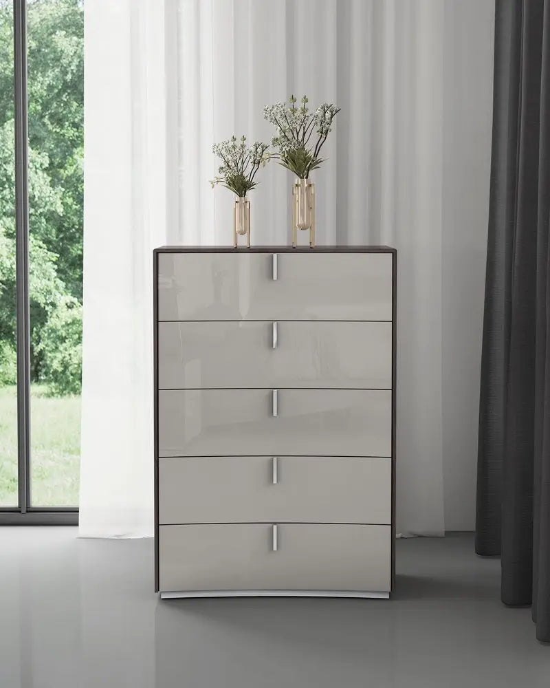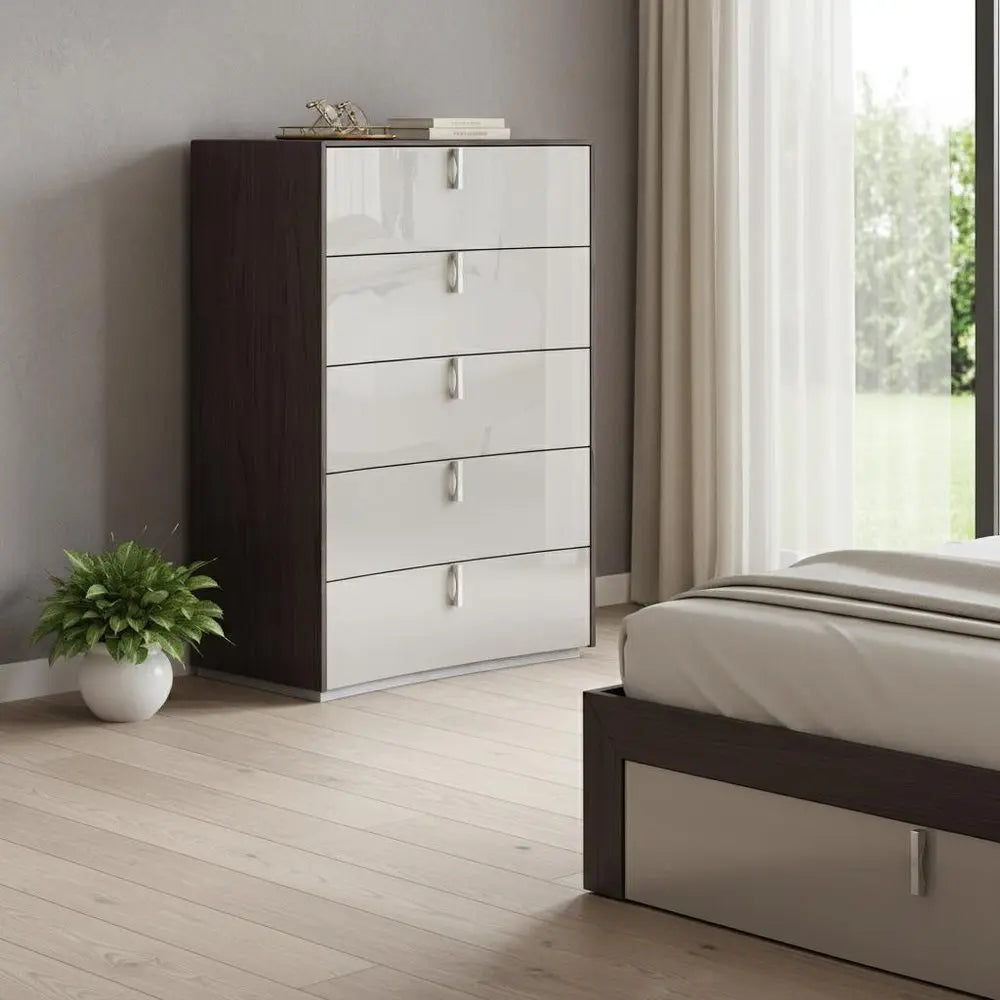 31" Brown And Beige Wood Five Drawer Gentlemens Chest
