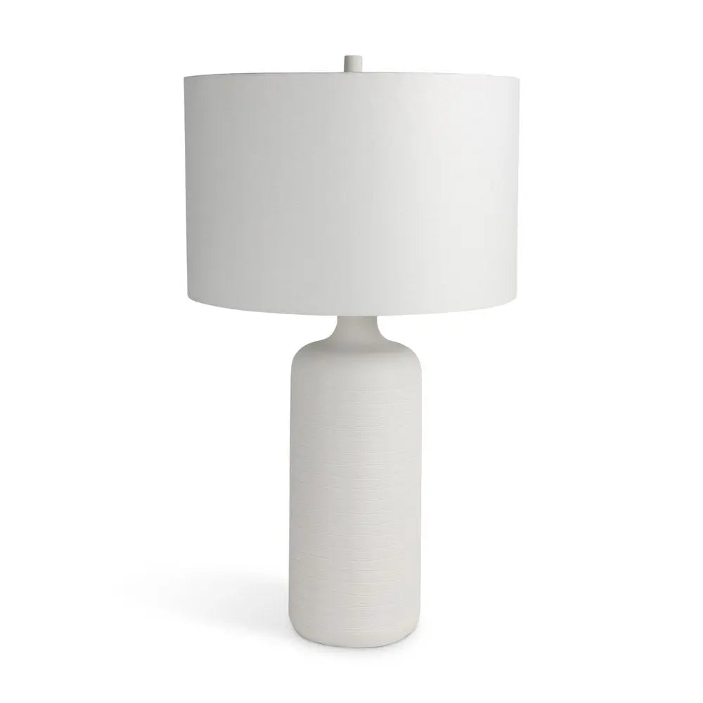 31" White Ceramic Round Bedside Lamp With White Drum Shade