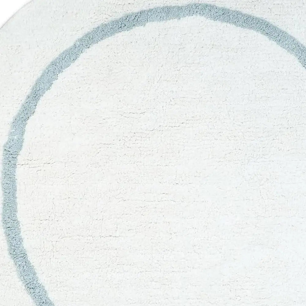 32" Baby Blue And White Cotton Round Geometric Bath Rug