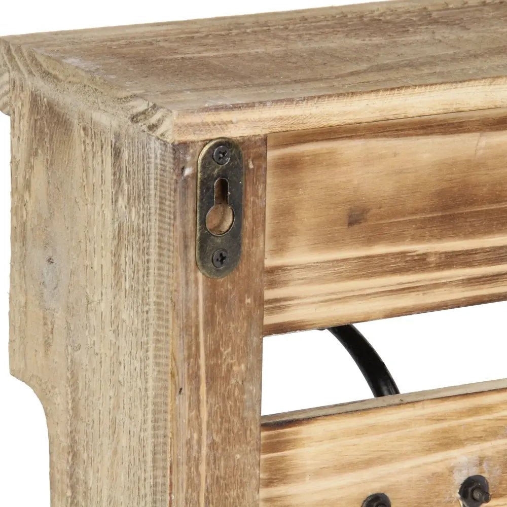 The 32-inch natural wood five hook wall mount coat rack is a stylish addition to any living room. Designed in a charming cottage style, it adds a rustic touch to your decor. The natural color of the wood enhances its organic appeal, making it suitable for various interior themes. Featuring five sturdy hooks, it offers ample space for coats, hats, and bags, ensuring your entryway stays organized and clutter-free. This wall-mounted coat rack not only serves a practical purpose but also functions as a decorative element, elevating your home’s aesthetic. Its easy wall placement allows you to optimize space while keeping essentials within reach. Embrace functionality and style with this elegant coat hanger choice. 8-inch h x 31.5-inch w x 5-inch d.
