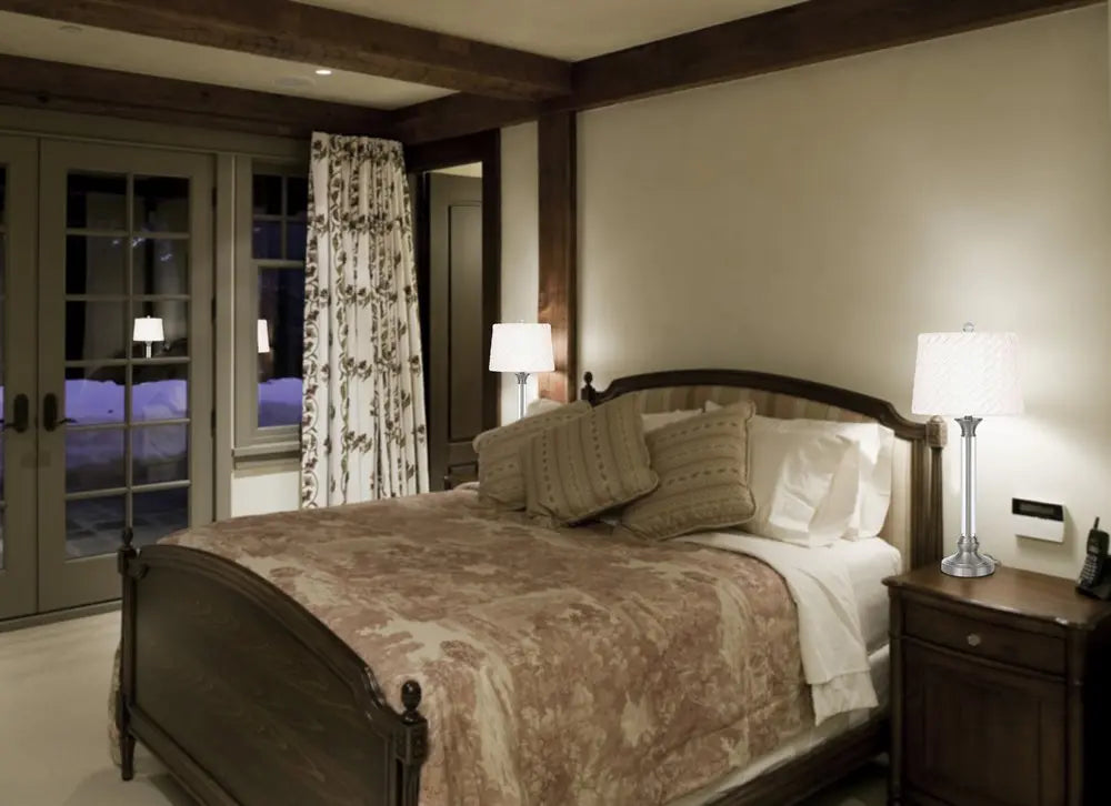 32" Nickel Metal Table Lamp With White Empire Shade